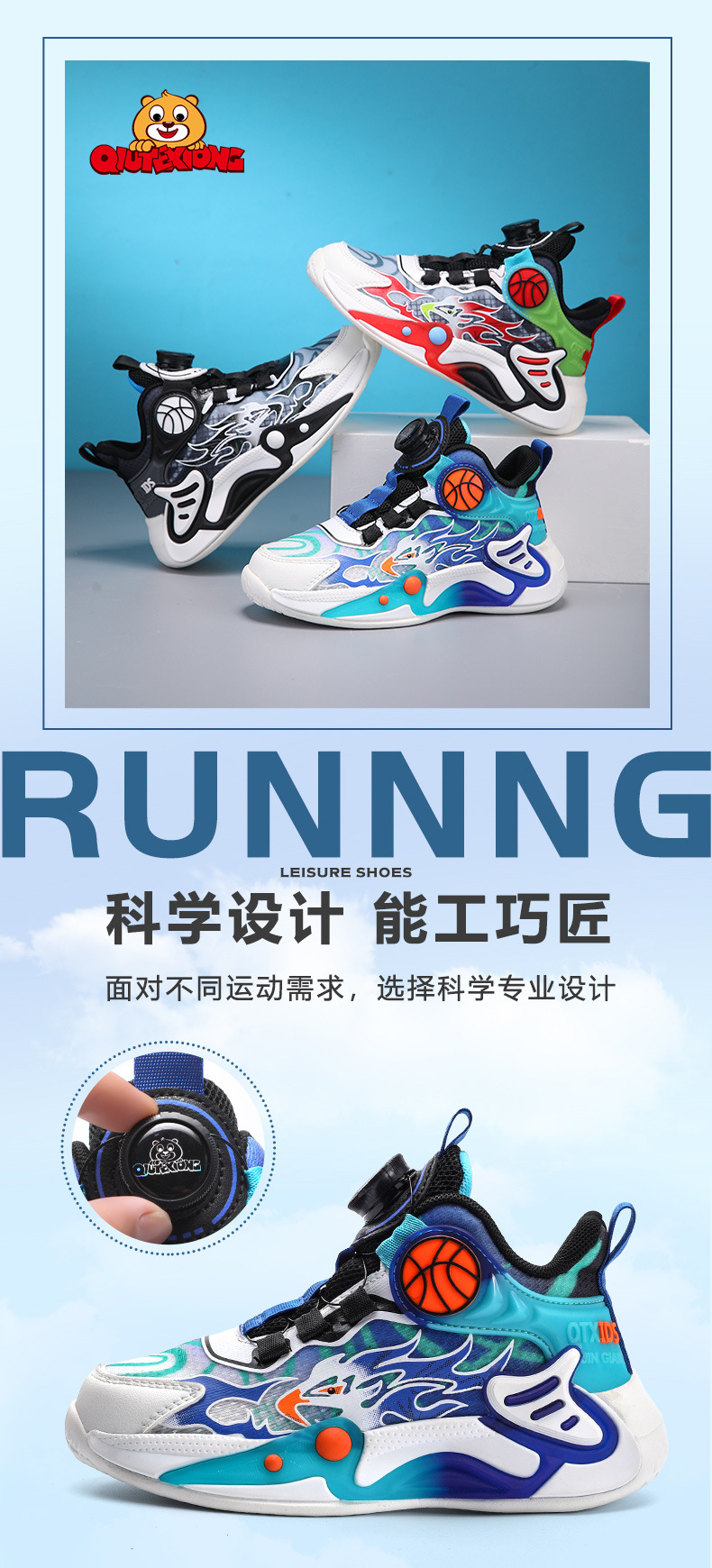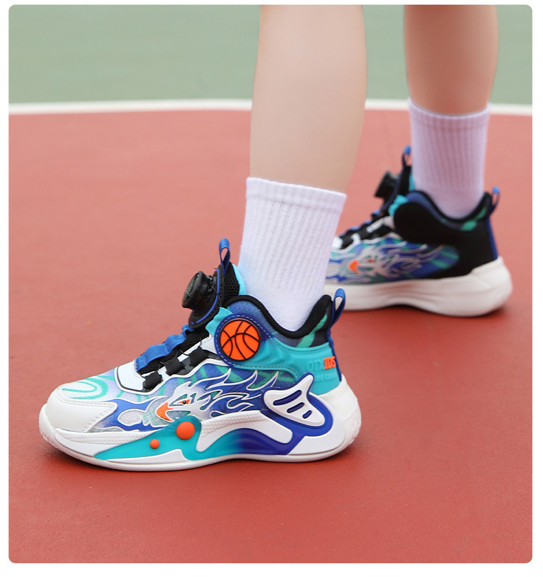 남아용 신발 2025 가을 어린이 전문 농구화 회전 버튼 메쉬 통기성 스포츠 러닝화 트렌디