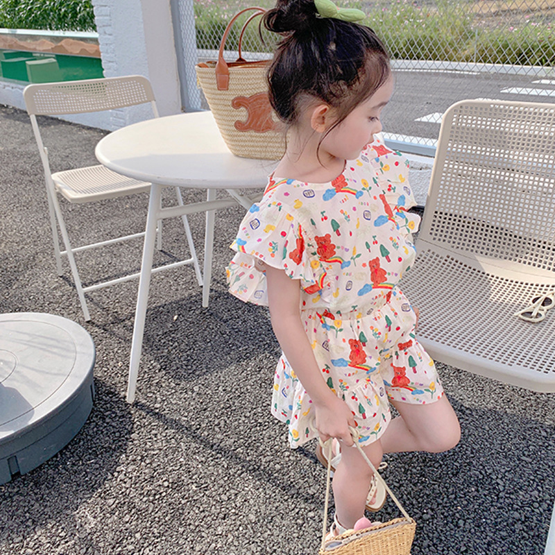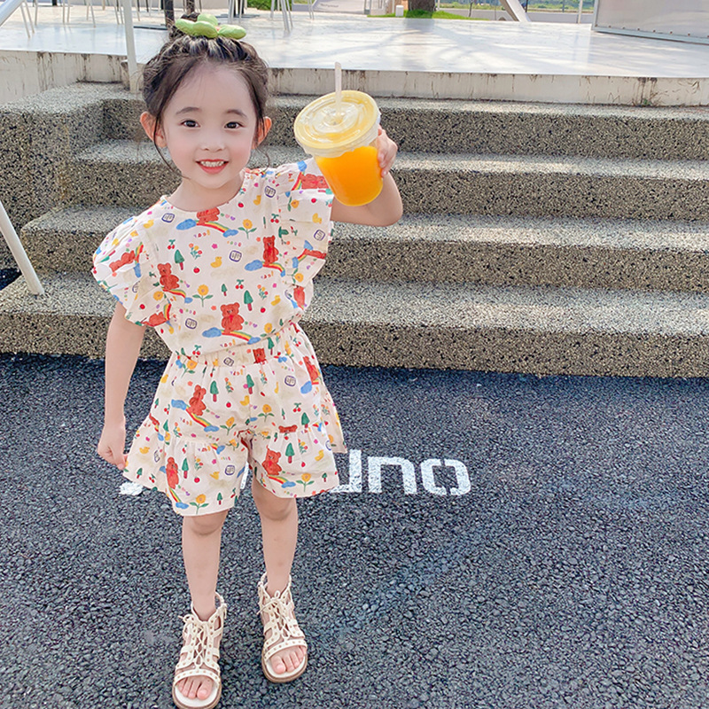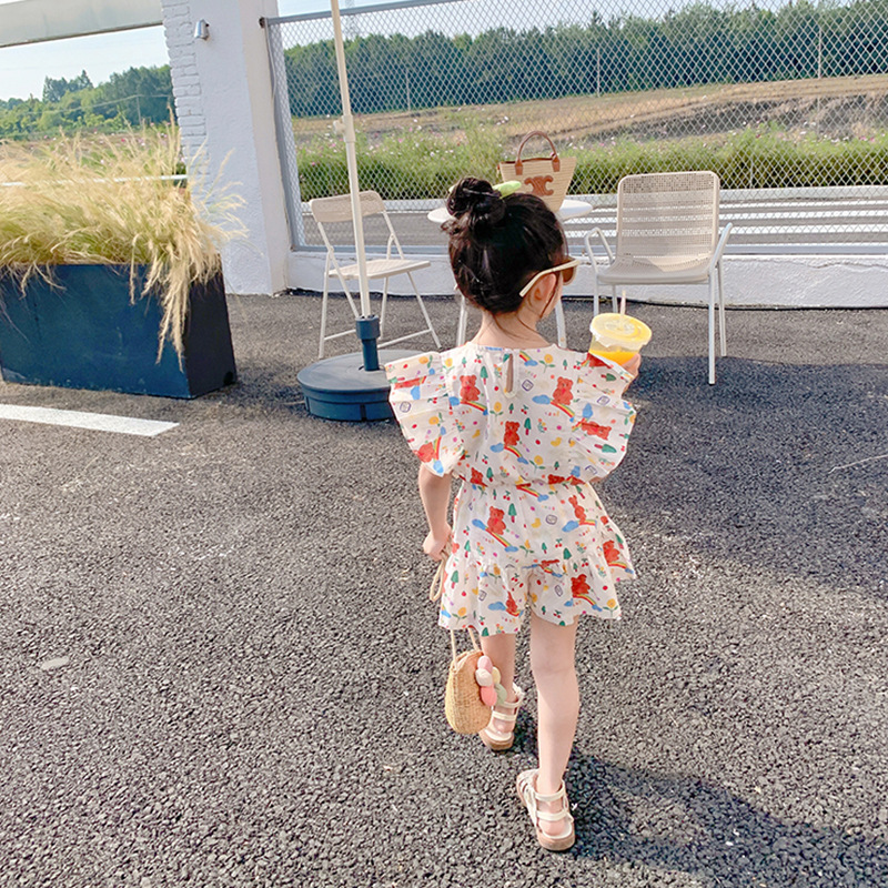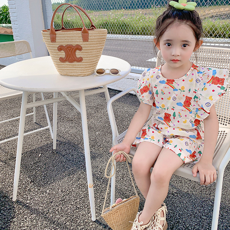 여아용 세트 만화 캐릭터 플라잉 슬리브 상의와 반바지 25 여름 신상품 수출용 아동복 3-8세