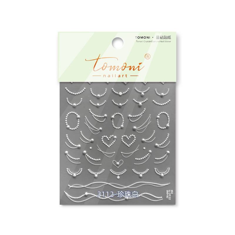 Tomoni 크리스탈 다이아몬드 네일 아트 스티커는 협력을 잃지 않습니다 귀여운 네일 스티커 도매 진주 사랑 체인 MS392스토어 가기