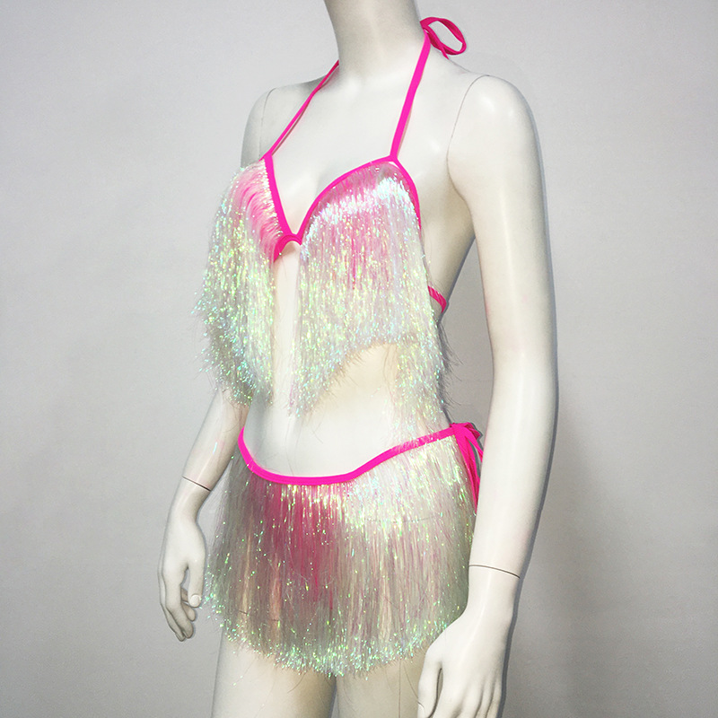 유럽과 미국 섹시한 분할 3 점 수영복 비키니 패션 컬러 레이저 스트랩 여성 등이없는 수영복