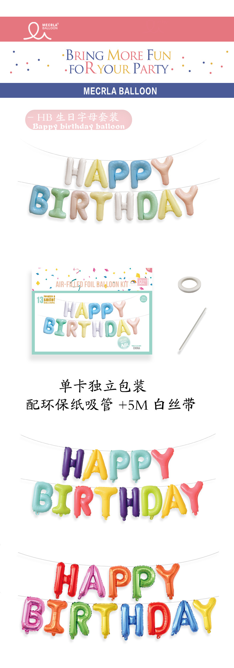 MECRLA 16inch 생일 축하 편지 세트 생일 파티 풍선 장식 용품 생일 장면 레이아웃 크로스