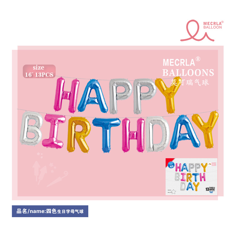 MECRLA 16inch 생일 축하 편지 세트 생일 파티 풍선 장식 용품 생일 장면 레이아웃 크로스스토어 가기