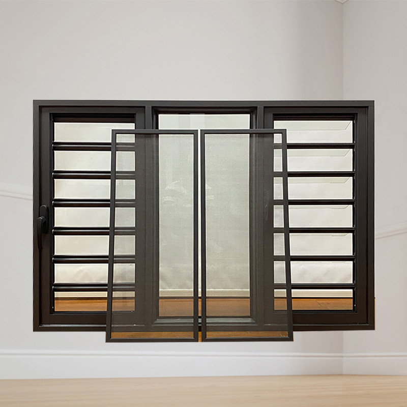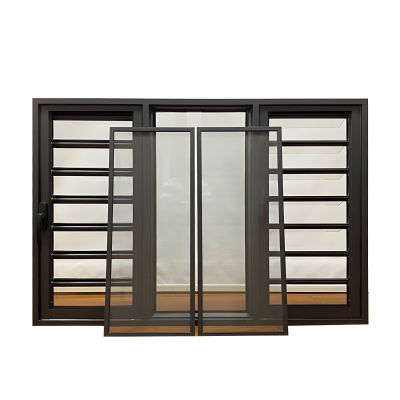 상하이 도어 및 창 제조 업체 알루미늄 합금 프로파일 핸들 유리 루버 구성 고정 스크린 창 여름 모기 방지 창