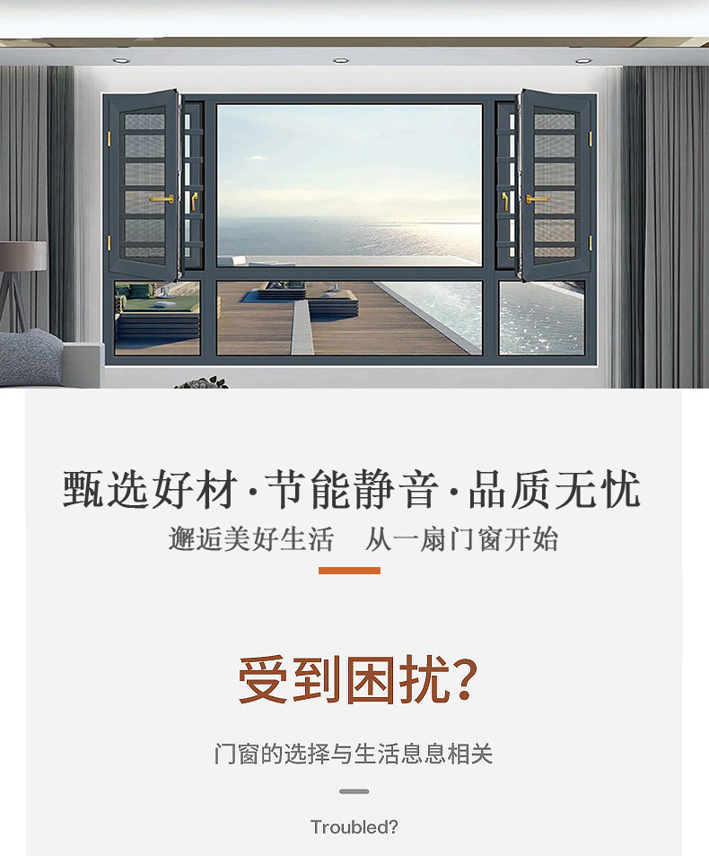 상하이 도어 및 창 제조 업체 알루미늄 합금 프로파일 핸들 유리 루버 구성 고정 스크린 창 여름 모기 방지 창스토어 가기