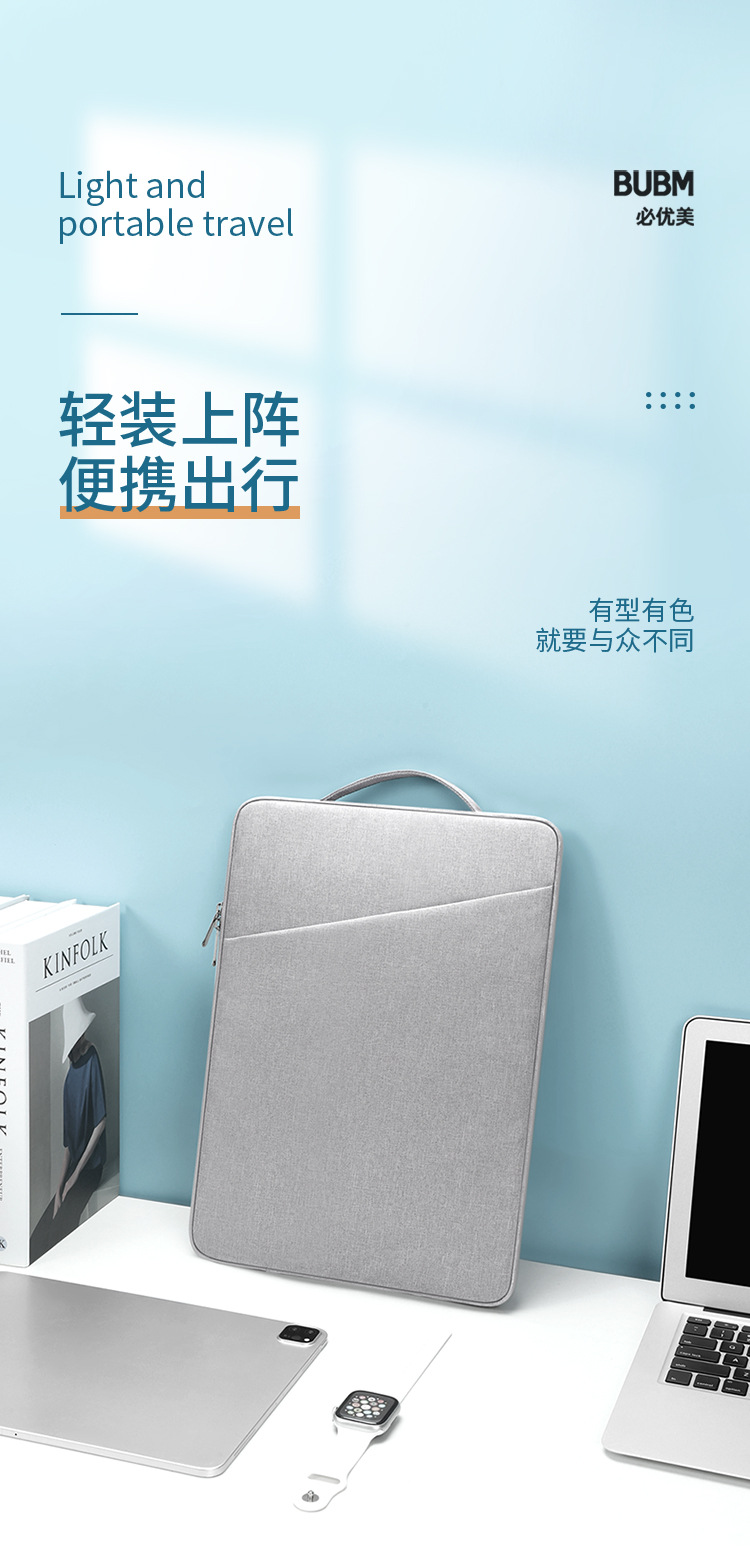 BUBM 단색 간단한 휴대용 노트북 라이너 가방 벨벳 방수 내마모성 14 인치 노트북 가방스토어 가기