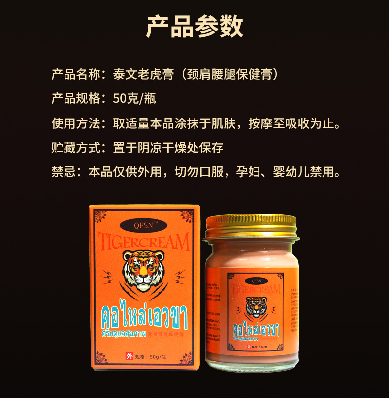 목, 어깨, 허리, 다리용 타이 호랑이 연고 50g, 관절 케어 마사지 연고, 사계절 사용 가능, 호랑이 연고 물리치료