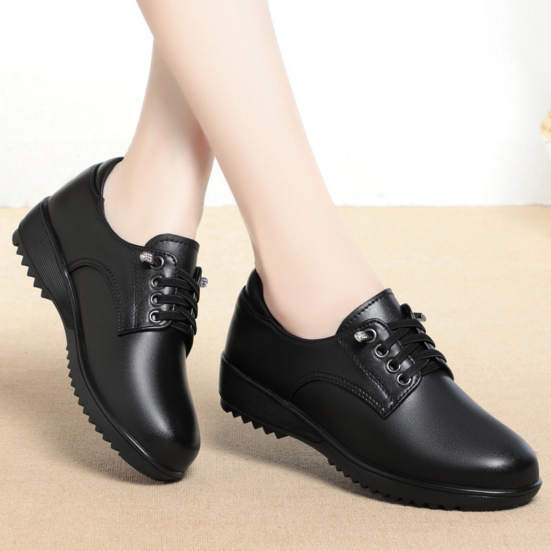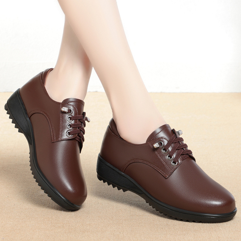 23 봄 새 여성용 싱글 가죽 신발 낮은 굽 웨지 앵클 부츠 WNN8311 어머니 신발 플러스 사이즈 43스토어 가기