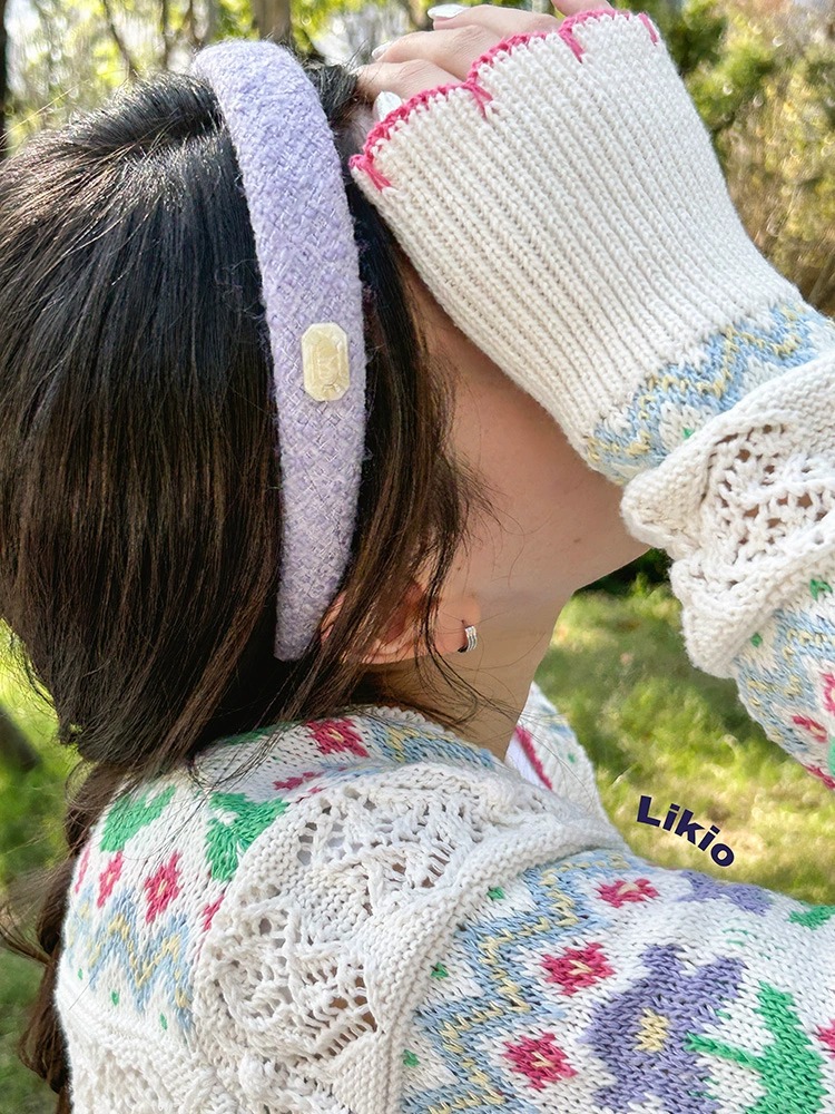 작은 사각형 다이아몬드 울 트윗 머리띠 고급 감각 헤어 액세서리 인터넷 인기 스타일 성격 우아한 귀여운 달콤한
