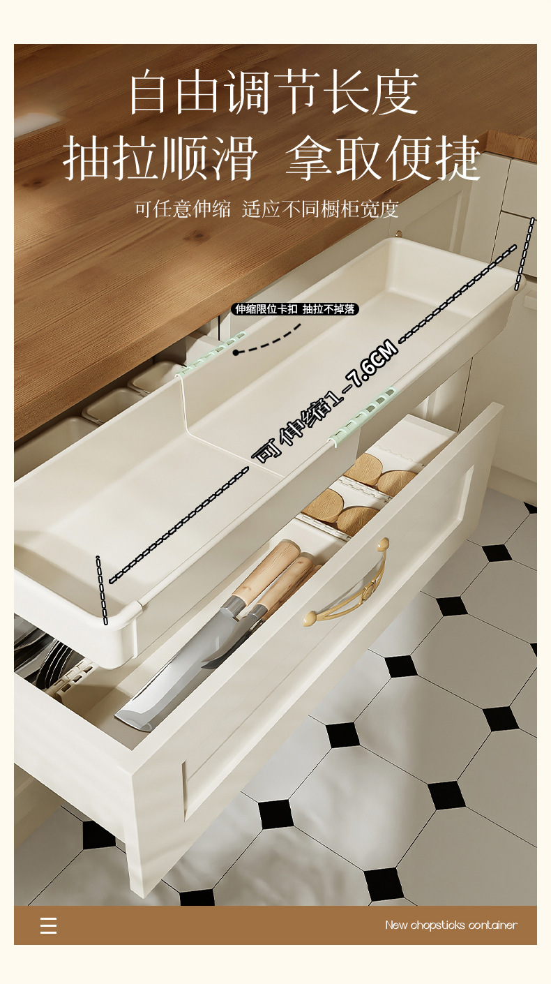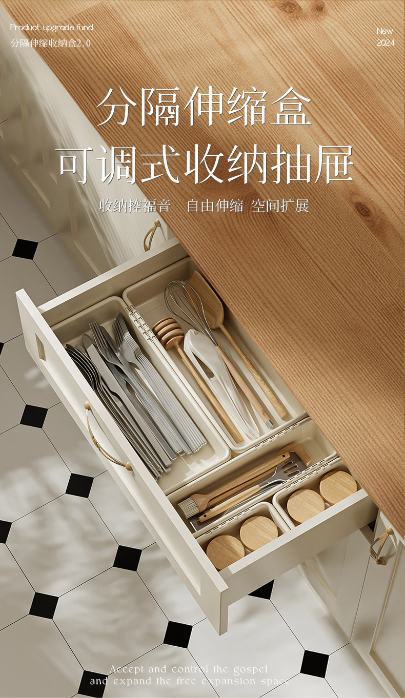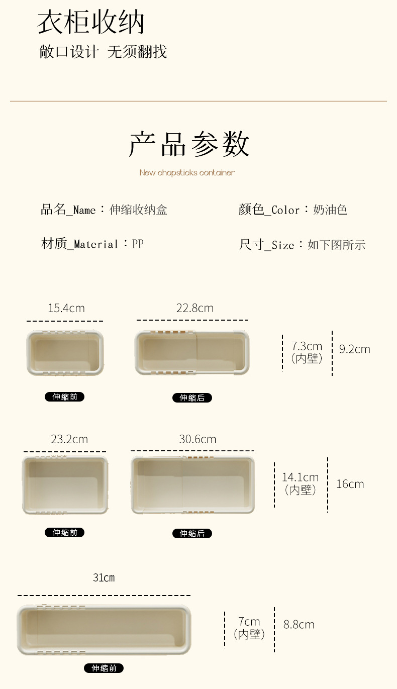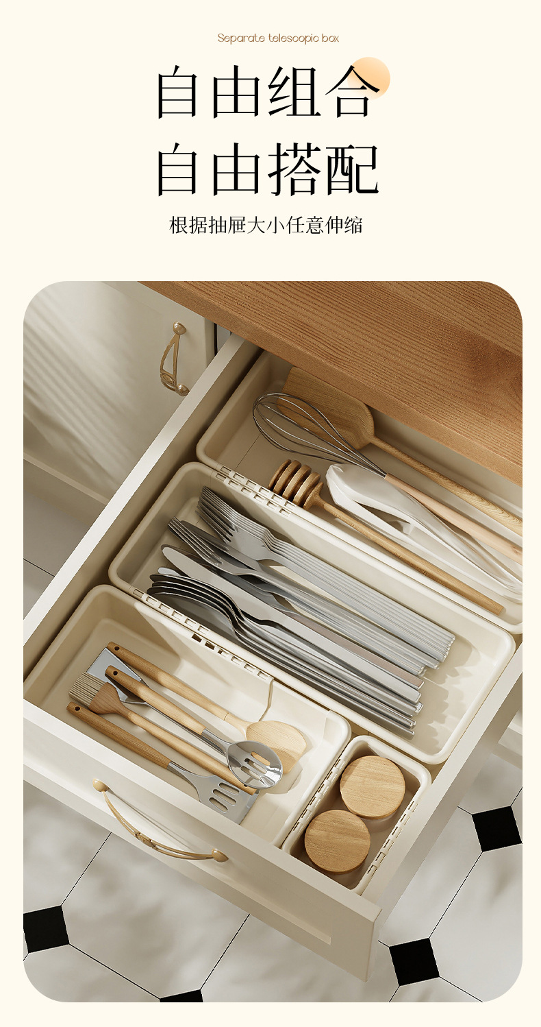 商品名称:日式简约可伸缩抽屉分类收纳盒大容量方形餐具文具可组合整理盒批
