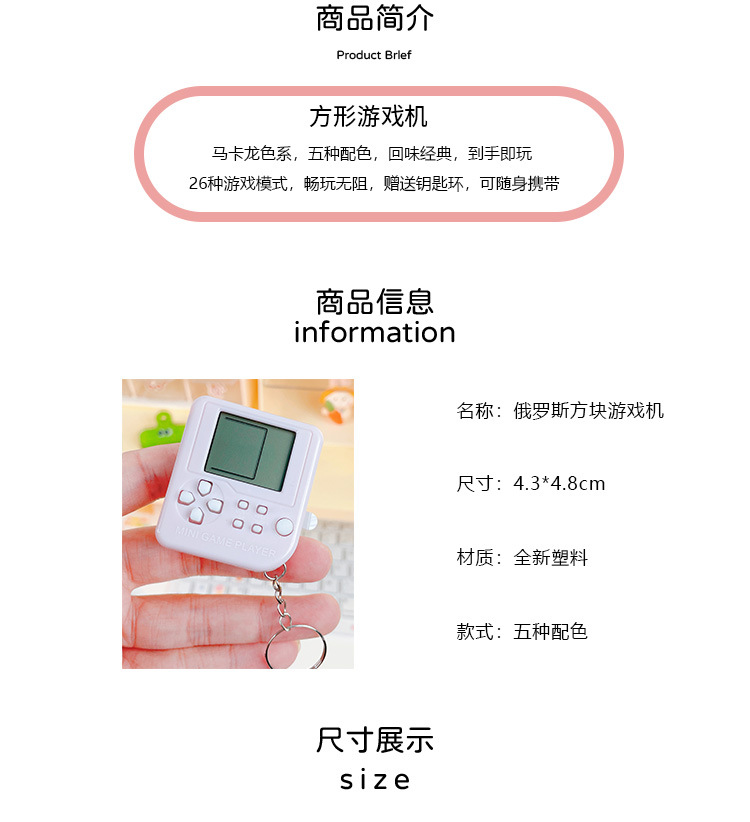 손바닥 크기 미니 테트리스 전자 게임기 장난감 클래식 향수 키체인 학생용 작은 선물 장식품