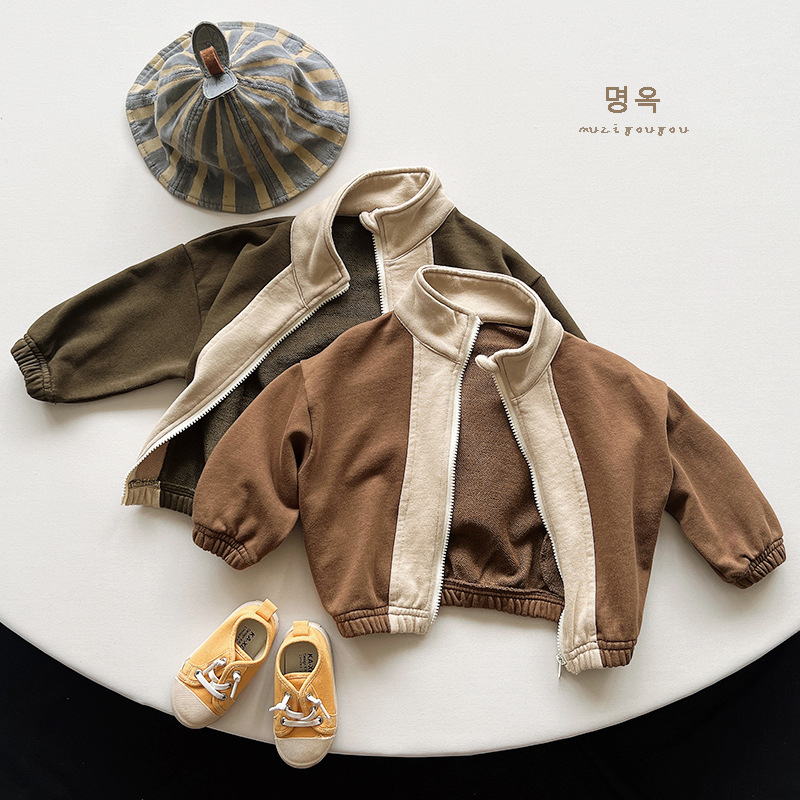 노크 팬 ~ 어린이 한국식 콘트라스트 컬러 코트 가을 새 소년 소녀 일본 카디건 스웨터 코트 유행 아동복스토어 가기