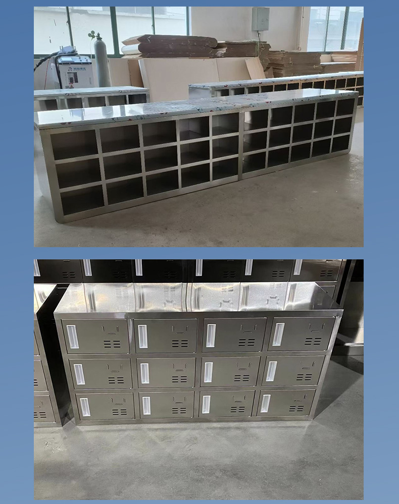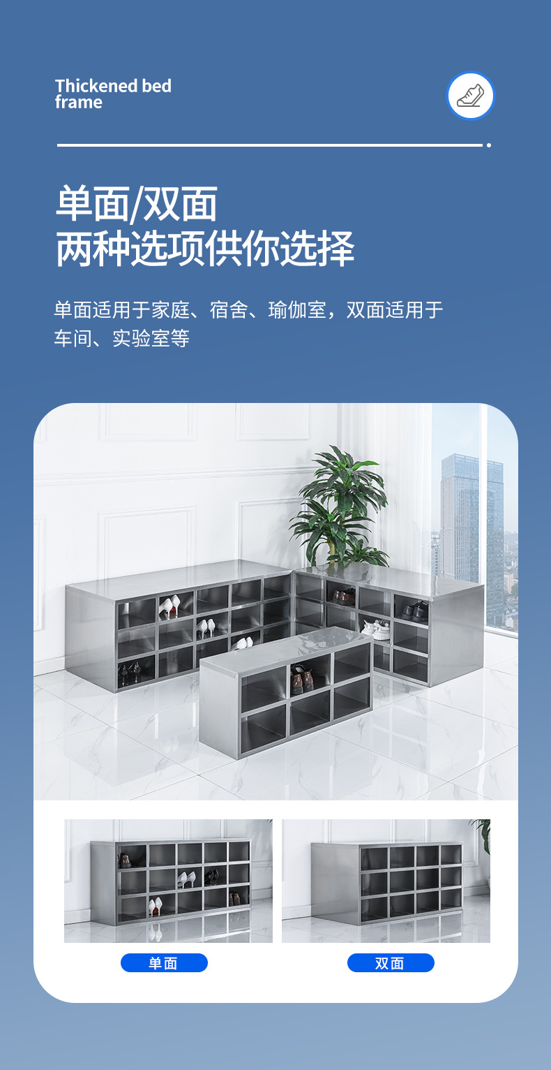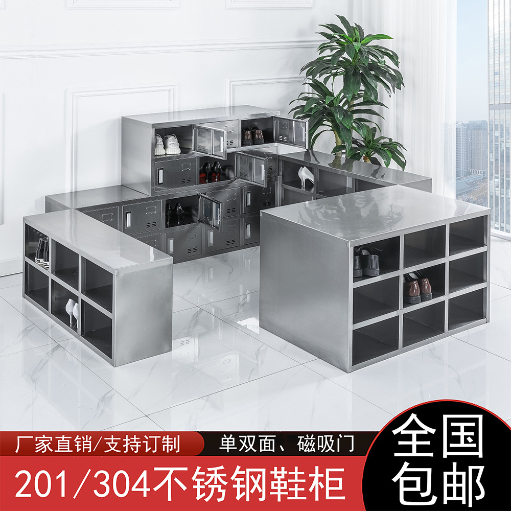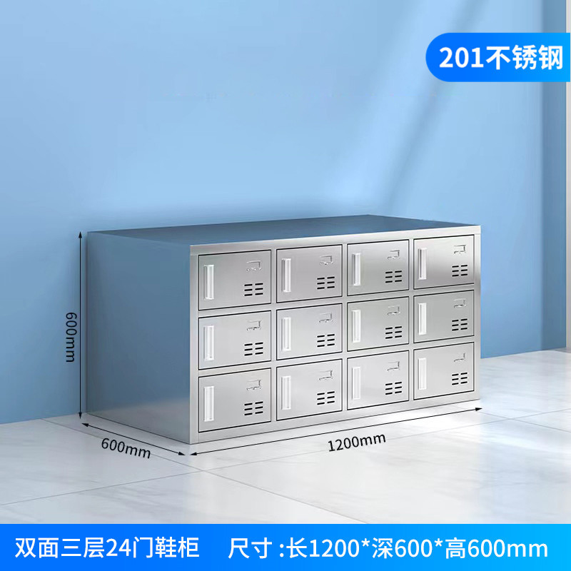 스테인레스 스틸 신발 캐비닛 먼지가없는 정화 작업장 3 층 신발 의자 양면 공장 직원 기숙사 다중 구획 보관 캐비닛