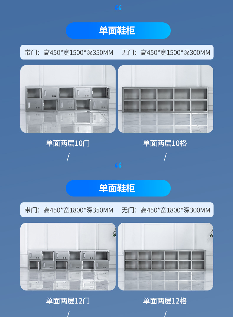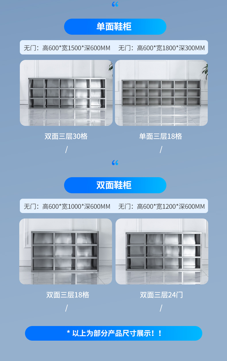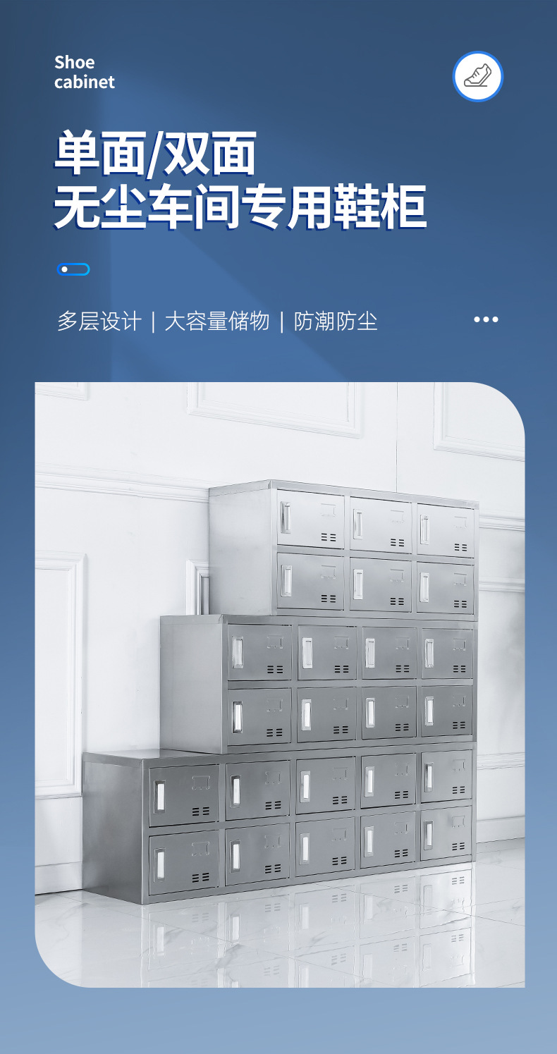 스테인레스 스틸 신발 캐비닛 먼지가없는 정화 작업장 3 층 신발 의자 양면 공장 직원 기숙사 다중 구획 보관 캐비닛
