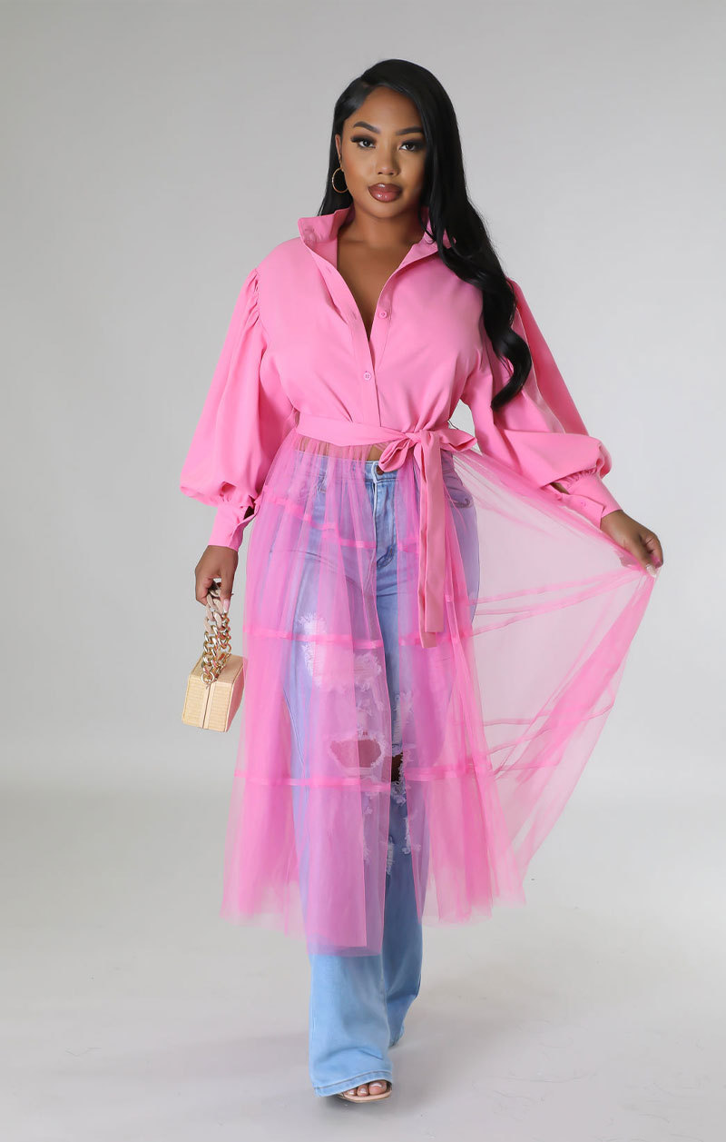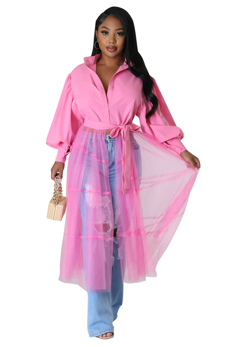 950 유럽과 미국 여성의 긴 셔츠 캐주얼 여성의 도매 가을 디자인 핑크 셔츠 패션 긴 소매스토어 가기