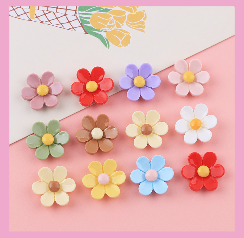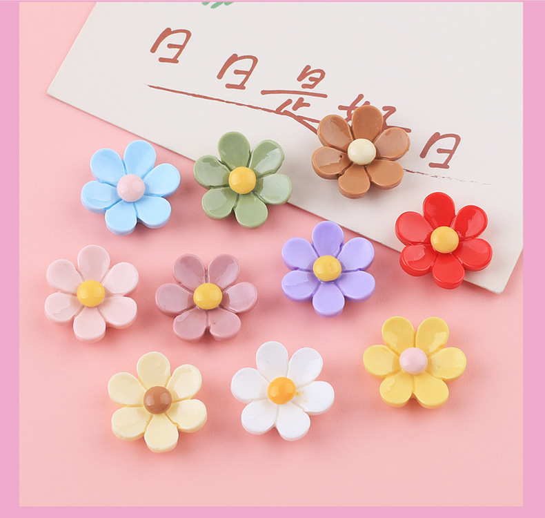 밝고 신선한 여섯 꽃잎 꽃 diy 크림 접착제 휴대 전화 쉘 보석 오일 드롭 헤어 액세서리 헤어 클립 수지 액세서리 재료
