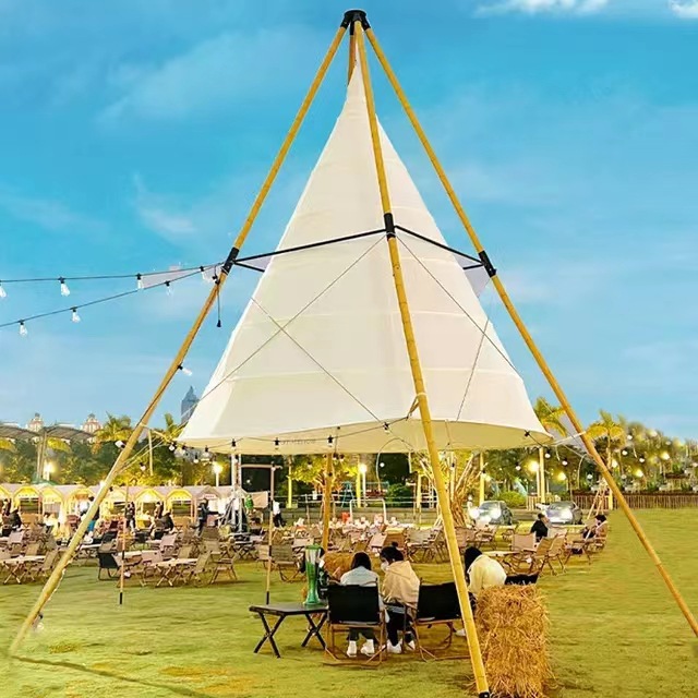 그물 레드 랜턴 텐트 야외 휴가 캠프 풍경 교수형 케이지 텐트 호텔 대나무 레스토랑 콘 모자 텐트