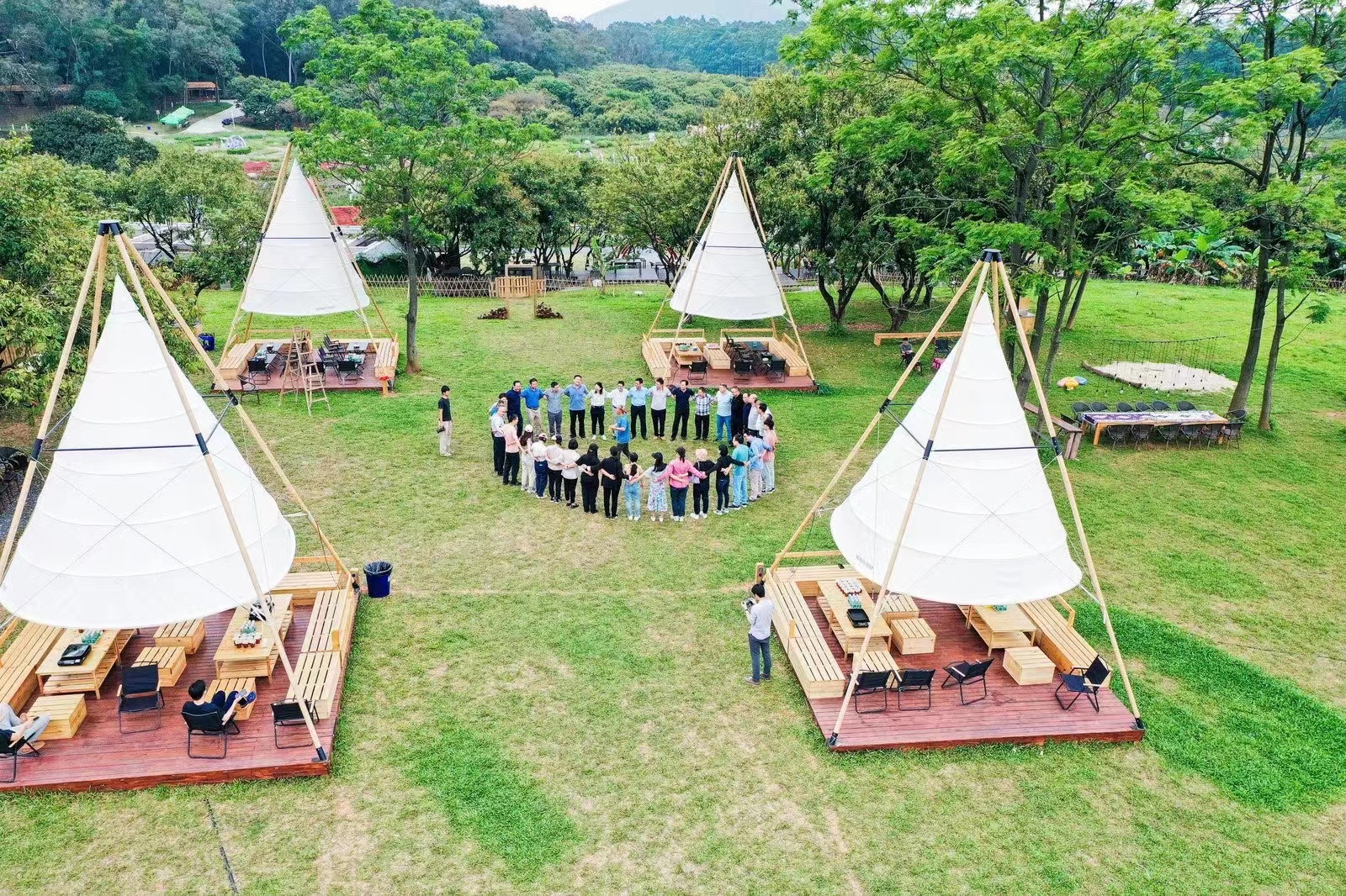 그물 레드 랜턴 텐트 야외 휴가 캠프 풍경 교수형 케이지 텐트 호텔 대나무 레스토랑 콘 모자 텐트스토어 가기