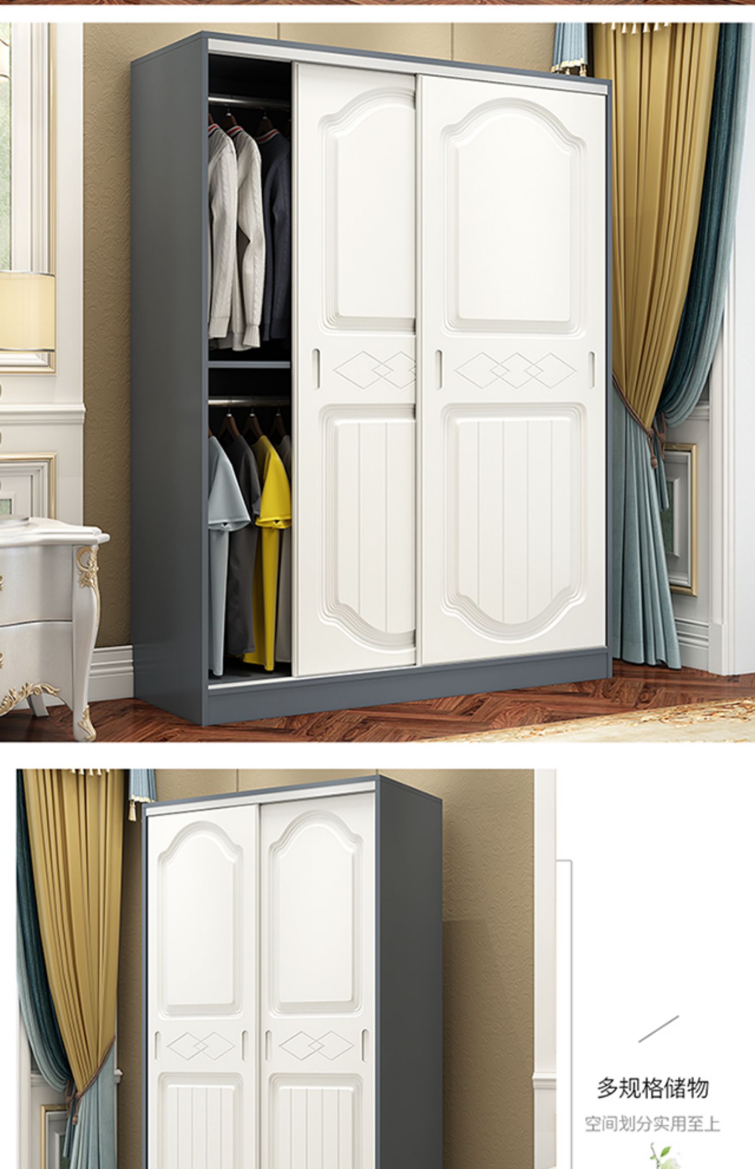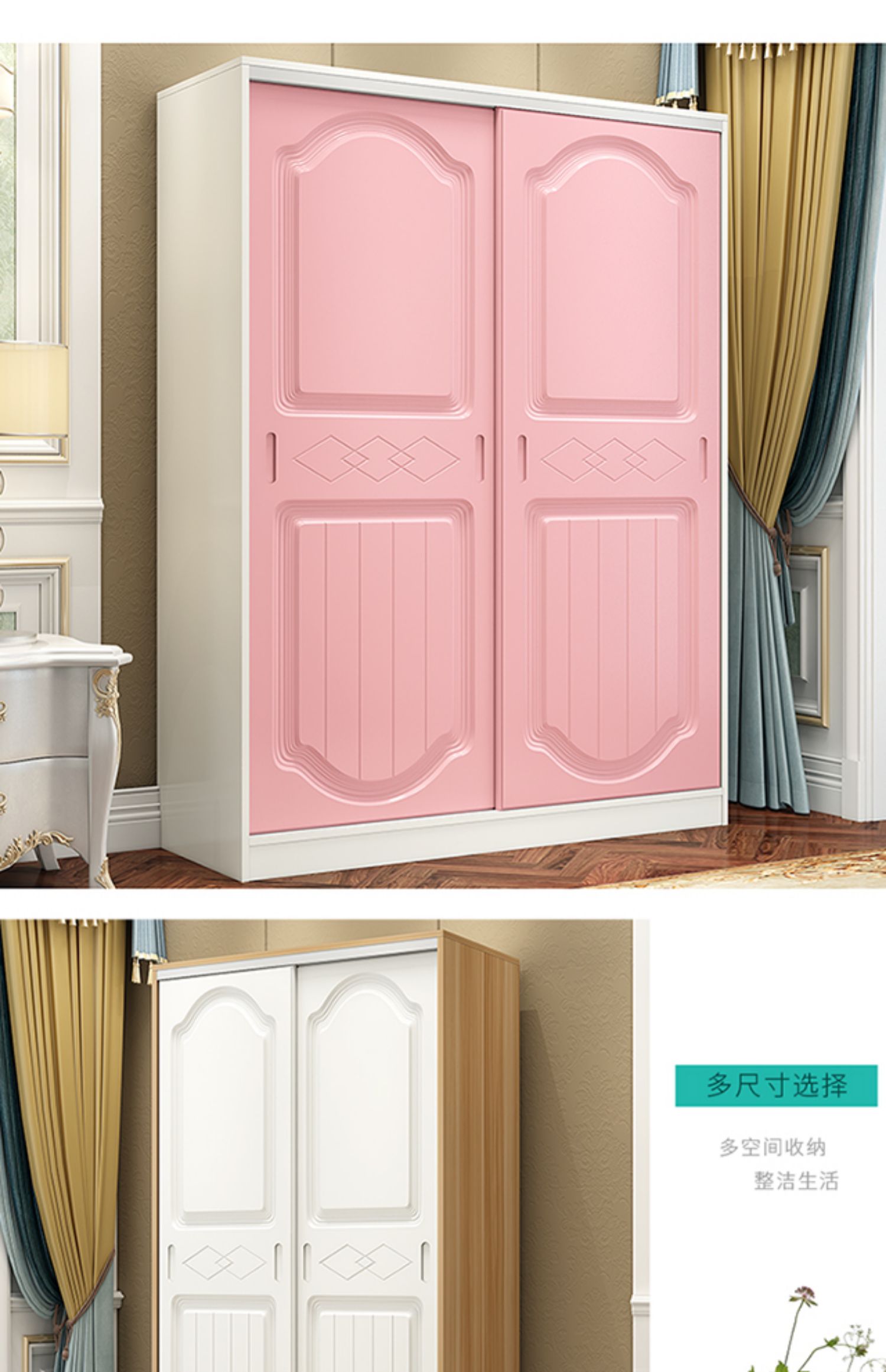 유럽식 옷장 단단한 나무 간단한 현대 경제적 침실 슬라이딩 도어가있는 조립 된 간단한 옷장 2 도어 어린이 옷장
