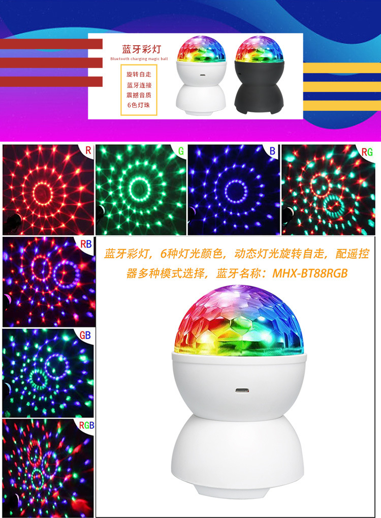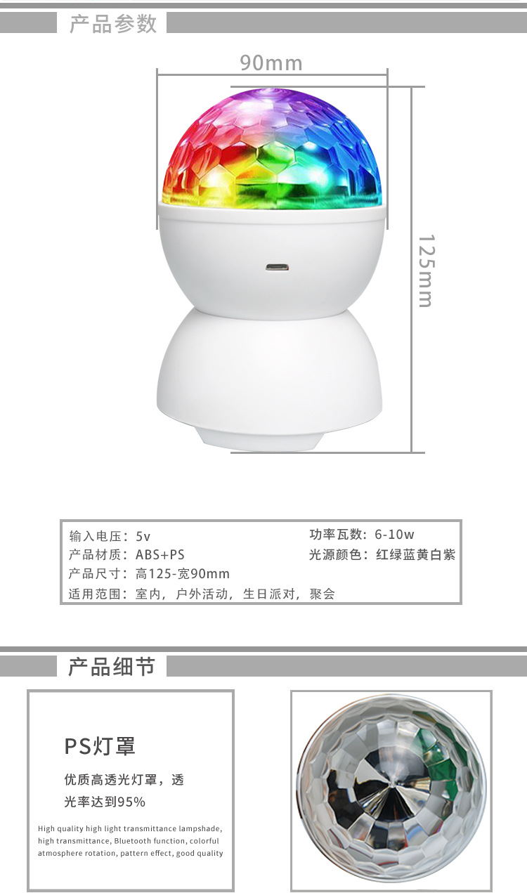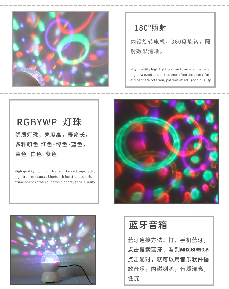 새로운 블루투스 음악 조명 매직 볼 회전 무대 조명 다채로운 야간 조명 LED 프로젝션 눈부심 분위기 조명 다채로운