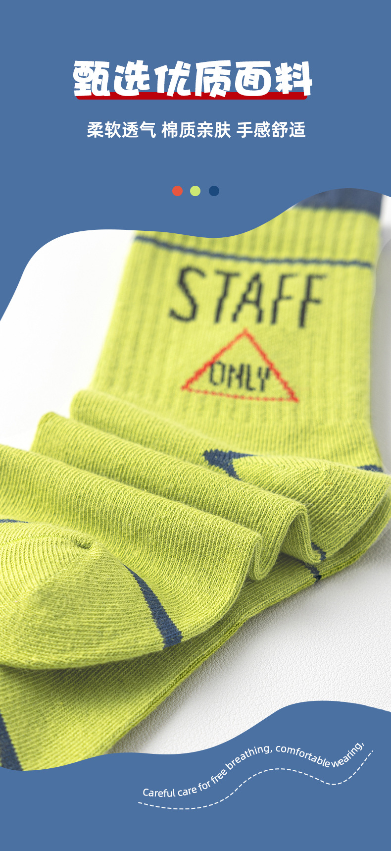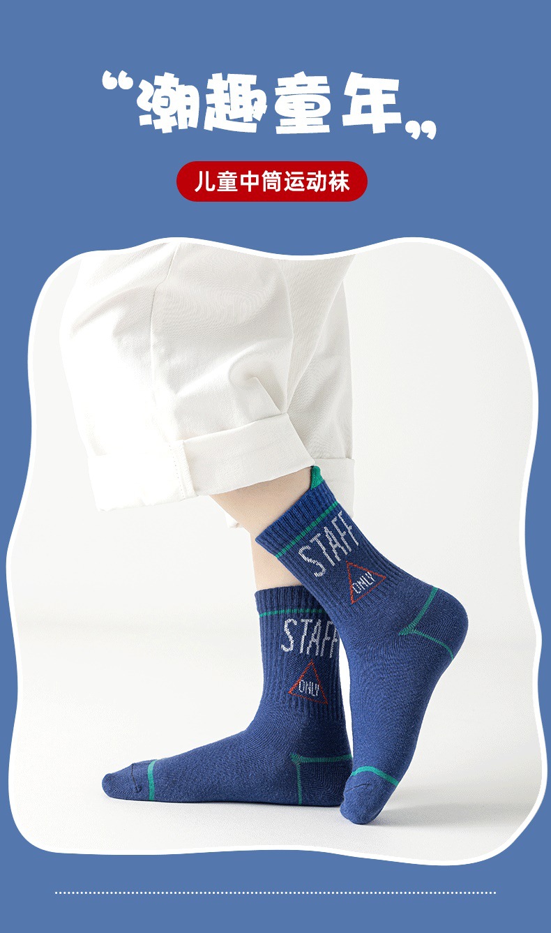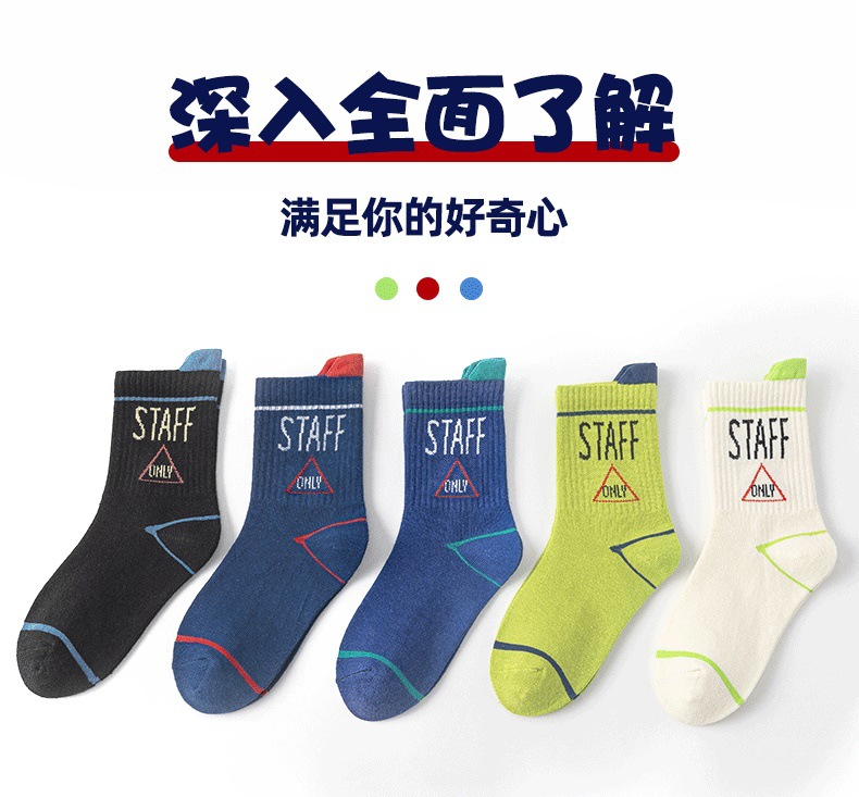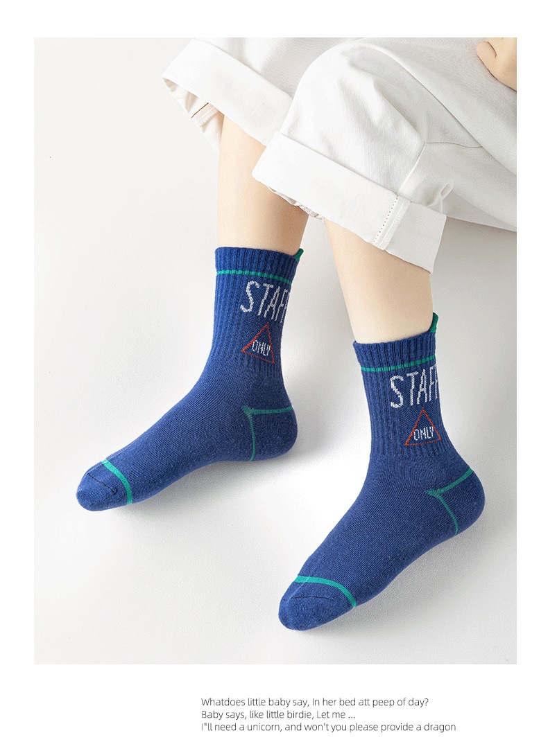 2023 소년 양말 봄과 가을 면 양말 중간 길이 양말 소년 스포츠 면 양말 편지 중간 길이 유행 양말 단색 어린이
