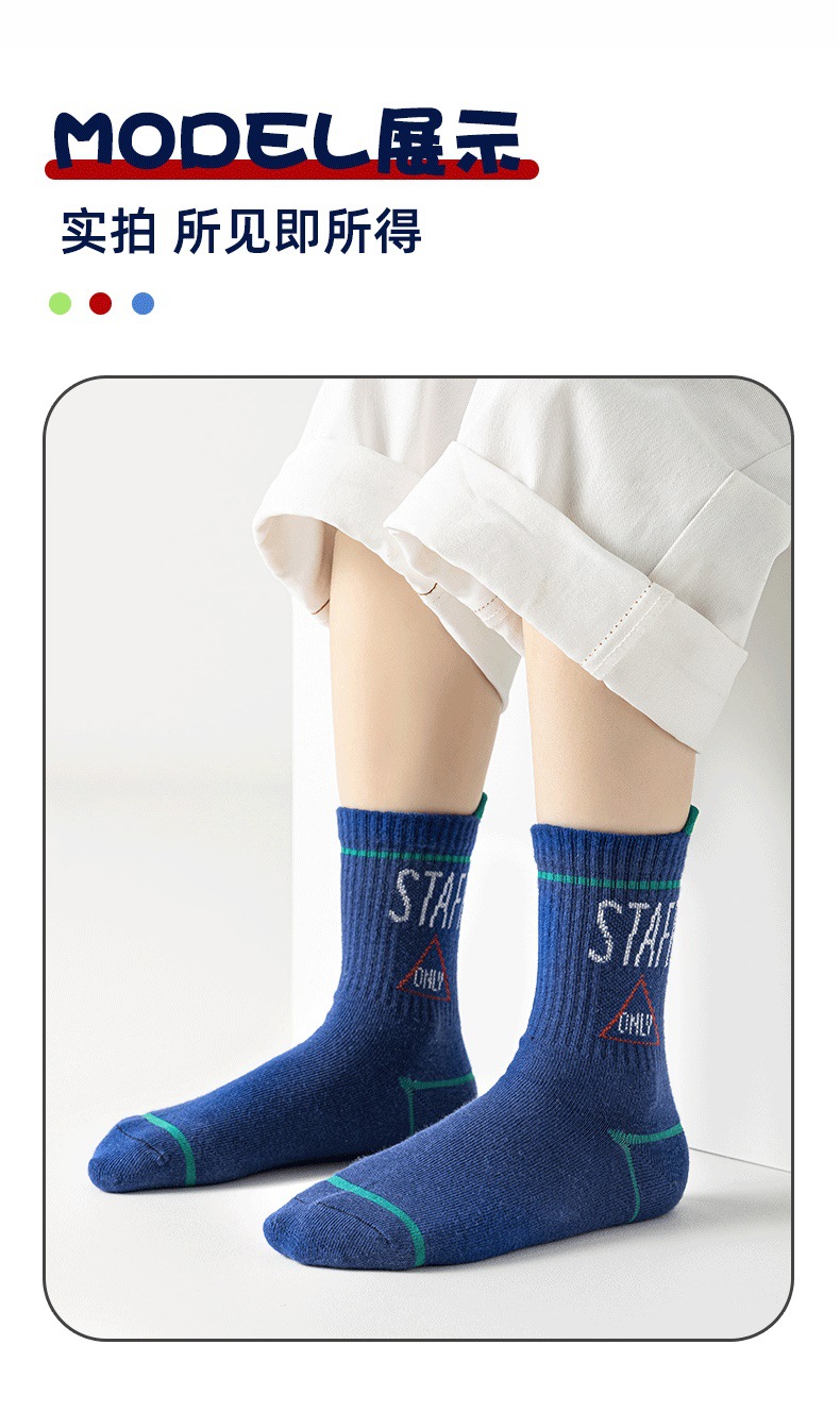 2023 소년 양말 봄과 가을 면 양말 중간 길이 양말 소년 스포츠 면 양말 편지 중간 길이 유행 양말 단색 어린이스토어 가기
