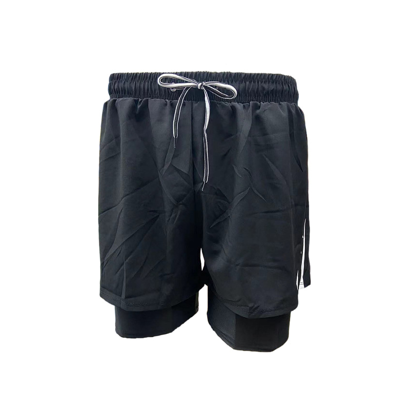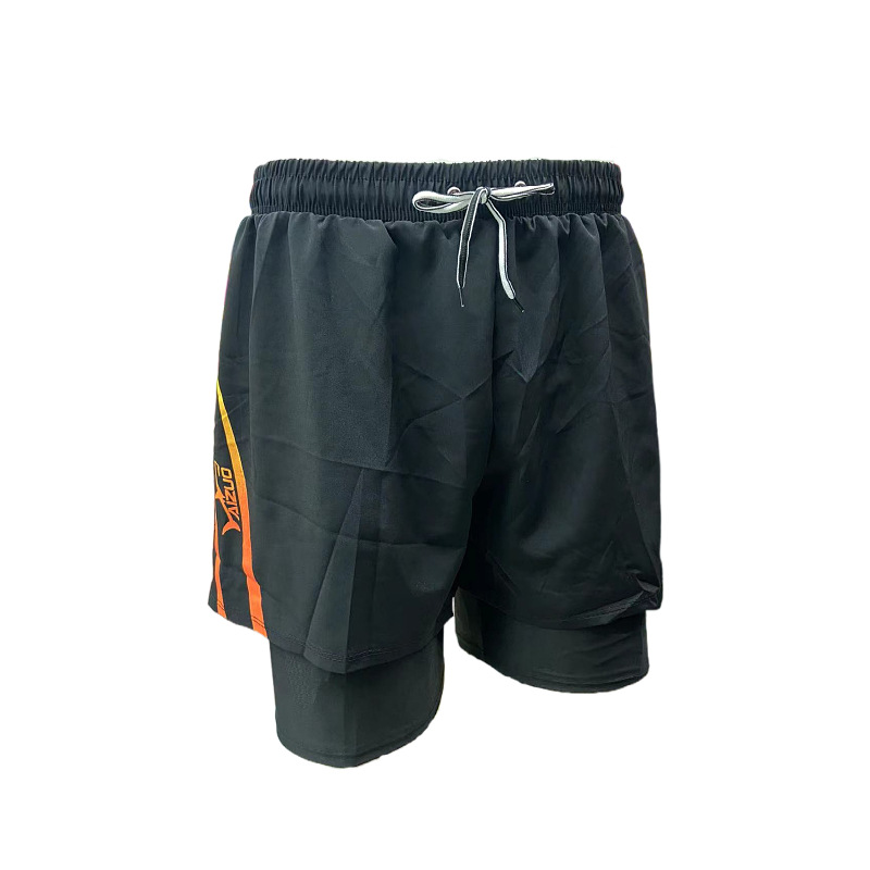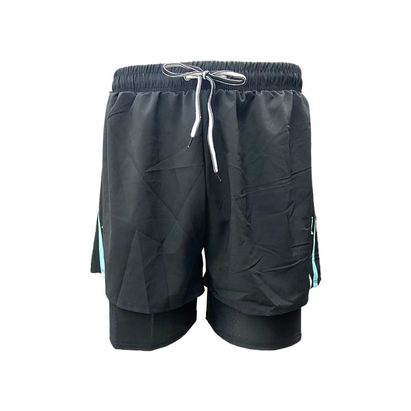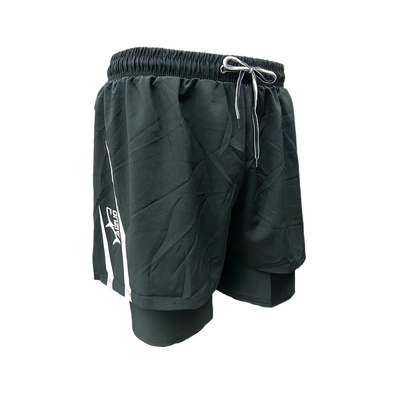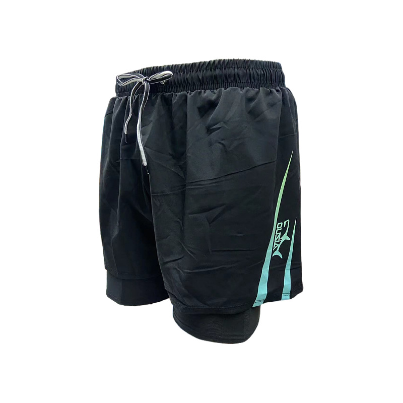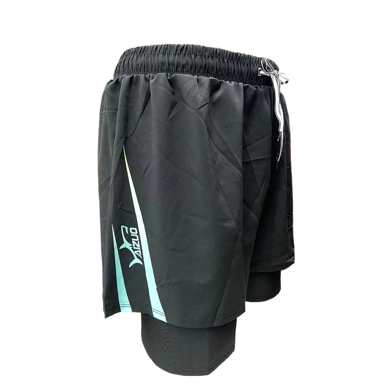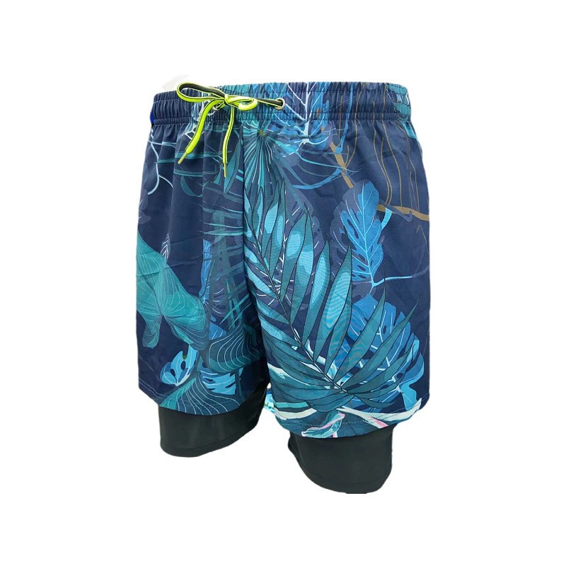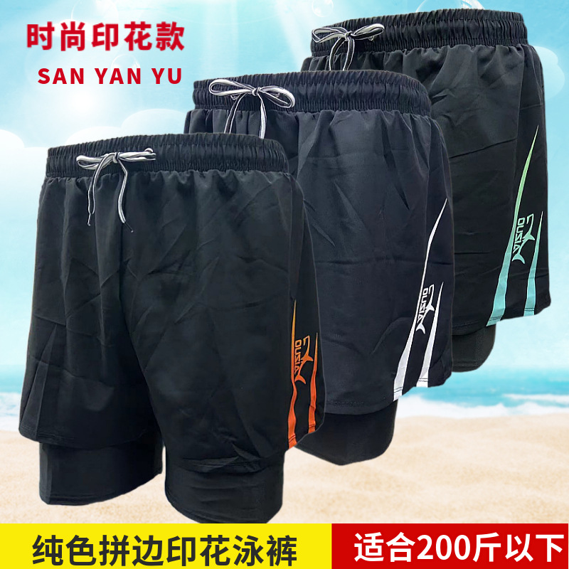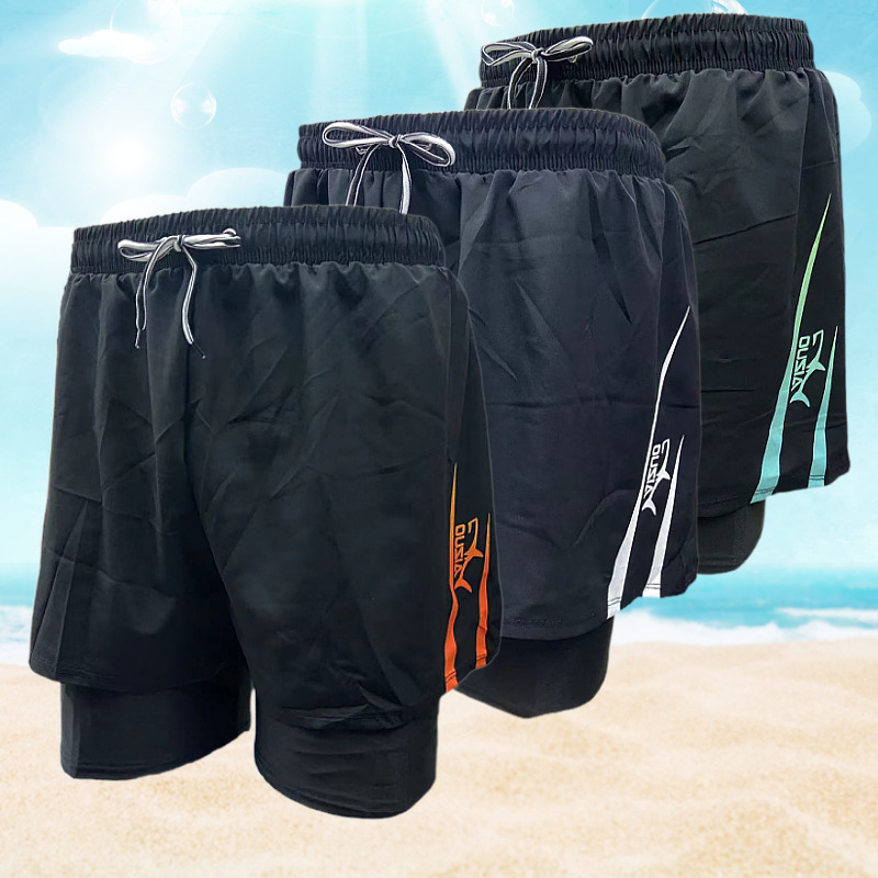 패션 남성용 더블 레이어 당황 방지 단색 상점 속건 수영 트렁크 편안한 스포츠 남성용 짧은 수영 트렁크