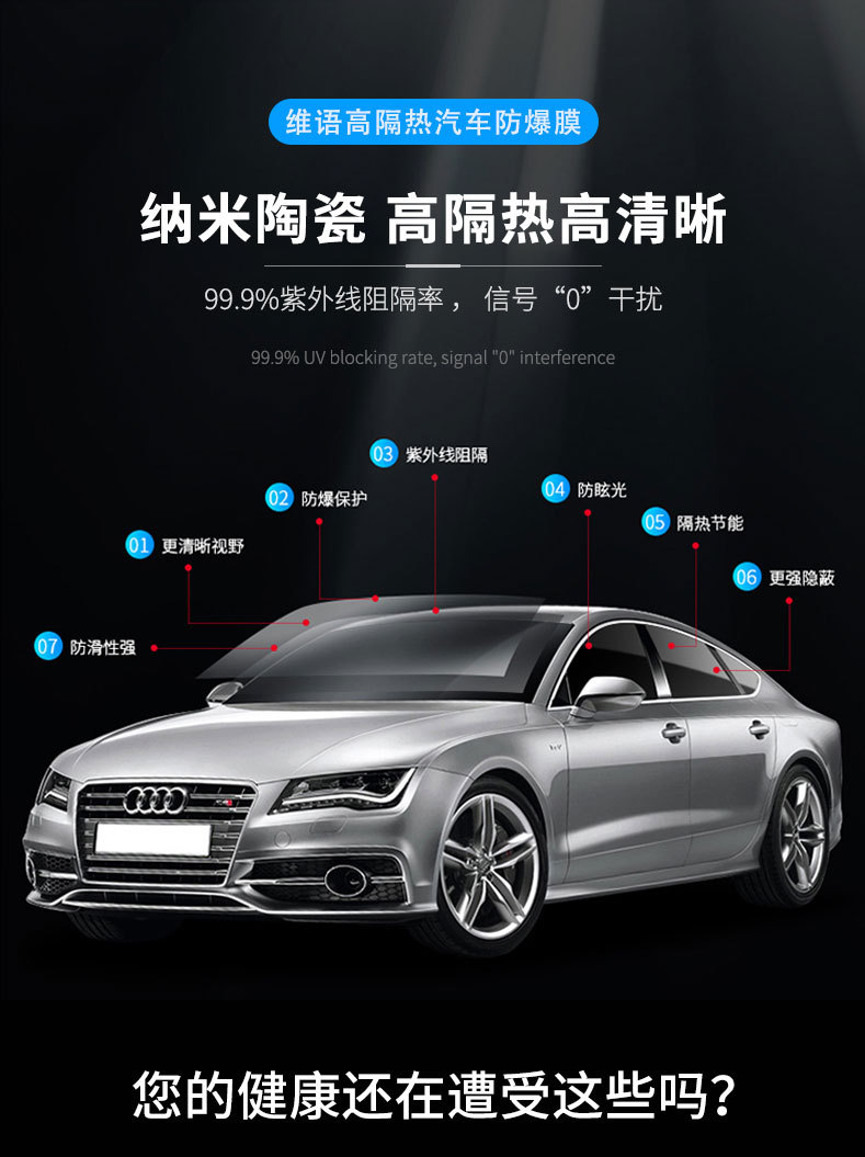 자동차 태양 광 필름 단열 필름 유리 전면 블록 폭발 방지 필름 단일 실버 열 반사 필름 선 스크린 필름 전체 자동차 개인 정보 보호 필름