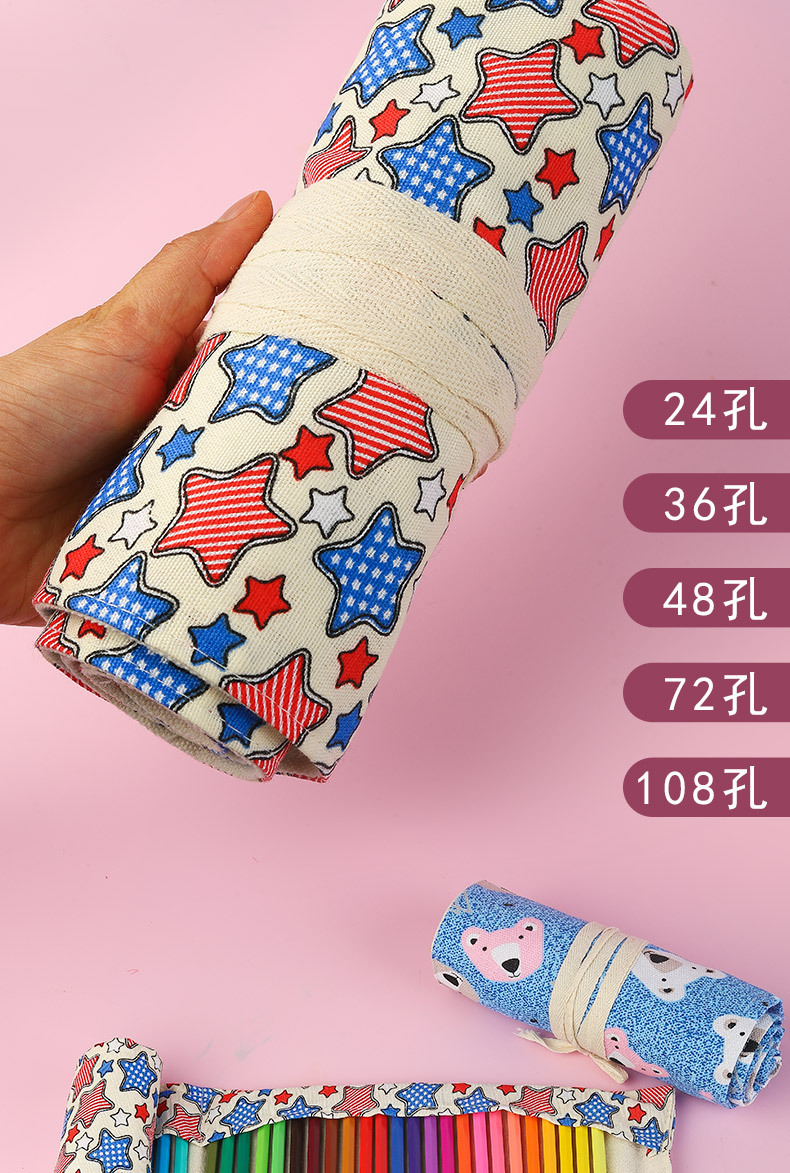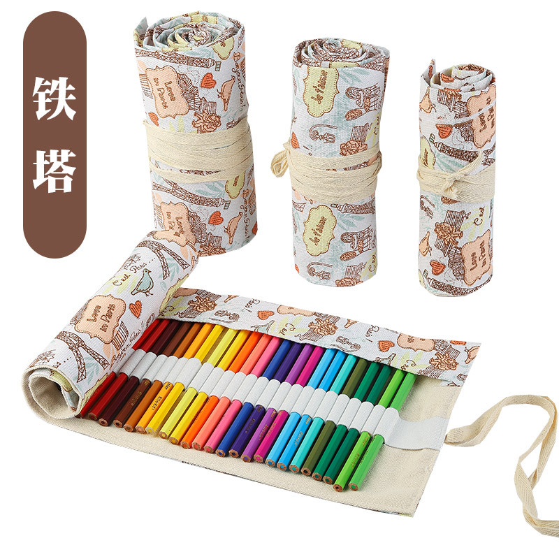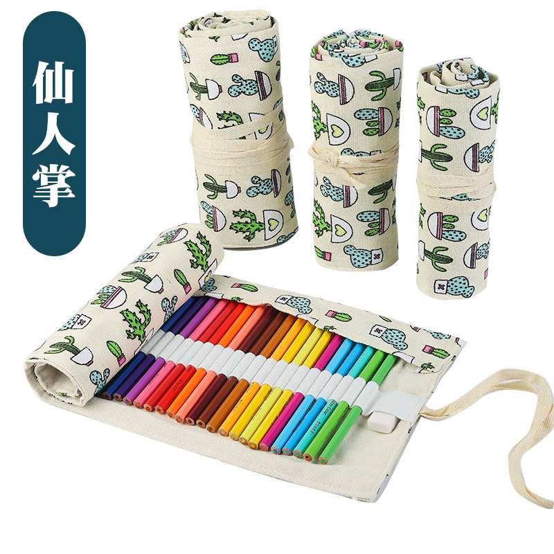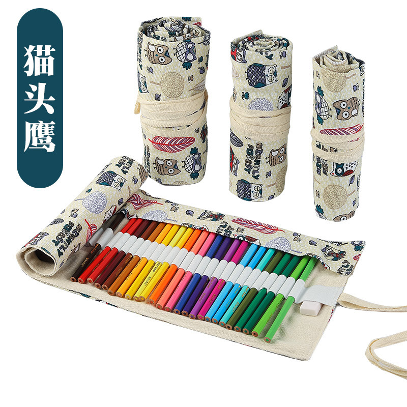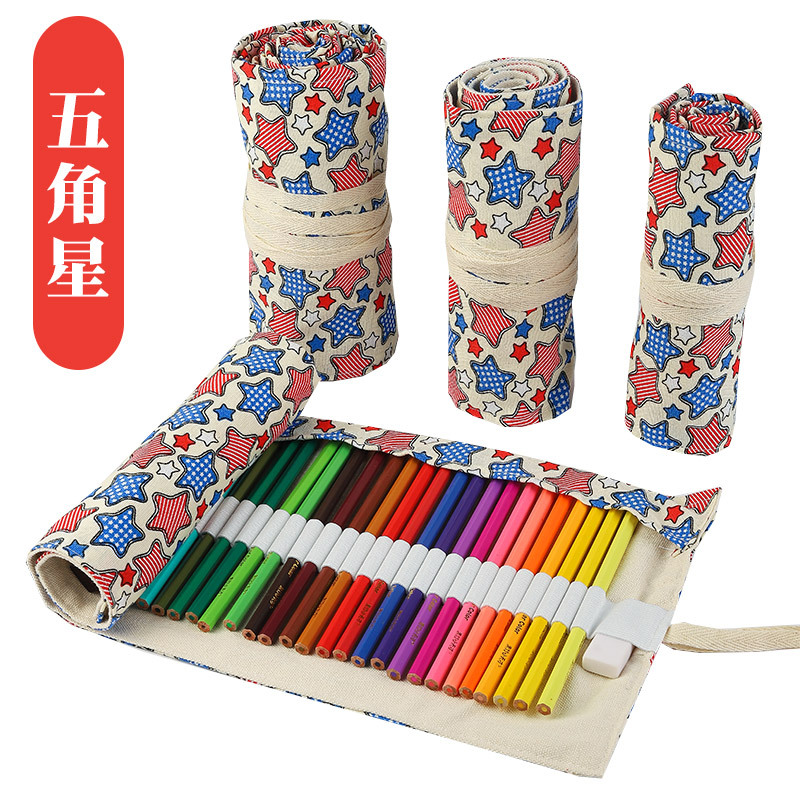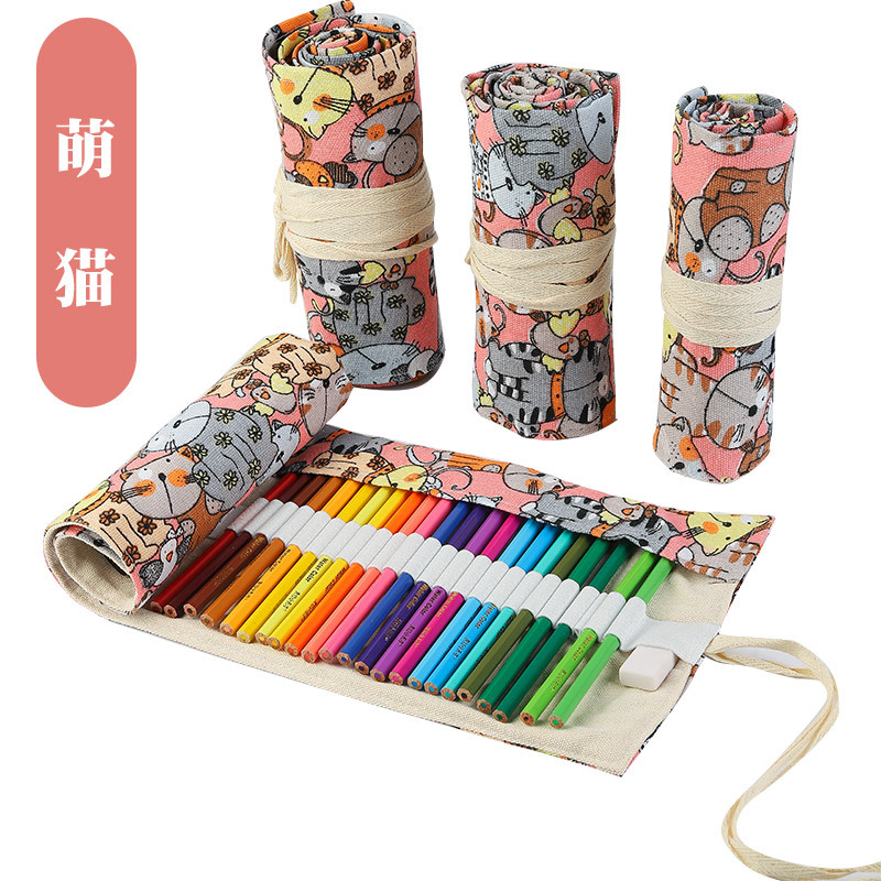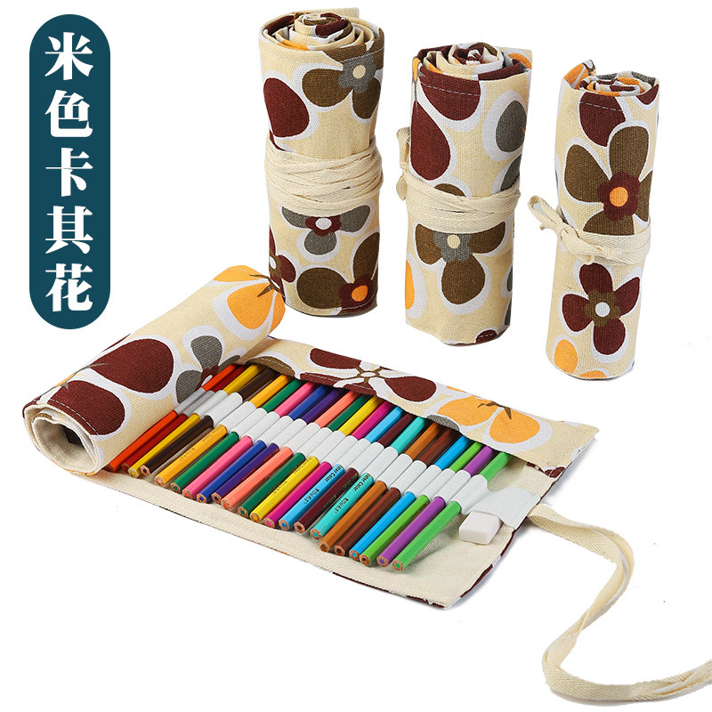 수제 캔버스 펜 커튼 12/24/36/48/72 홀 대용량 롤 펜 가방 남녀 컬러 리드 스케치 문구 상자스토어 가기