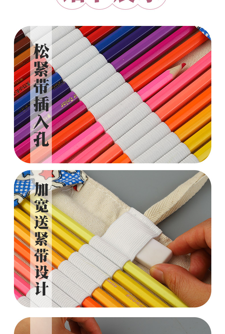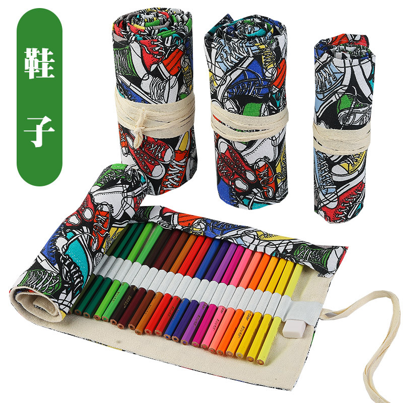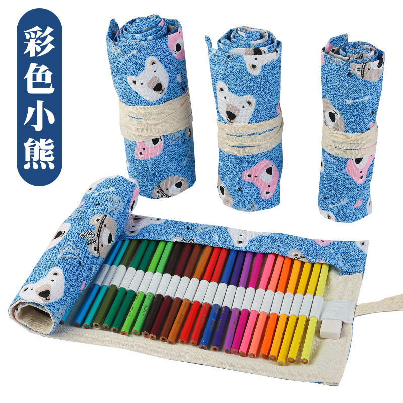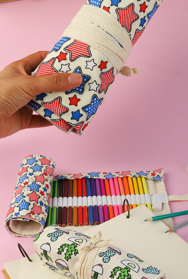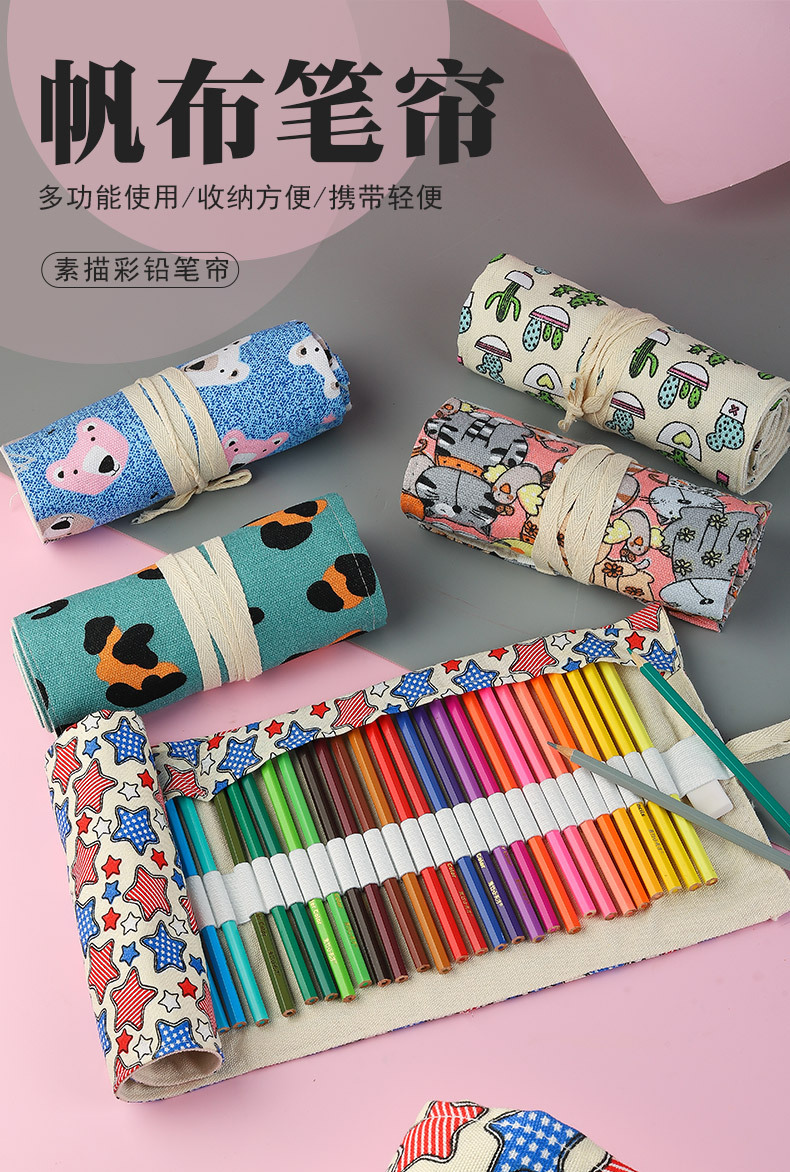 수제 캔버스 펜 커튼 12/24/36/48/72 홀 대용량 롤 펜 가방 남녀 컬러 리드 스케치 문구 상자스토어 가기