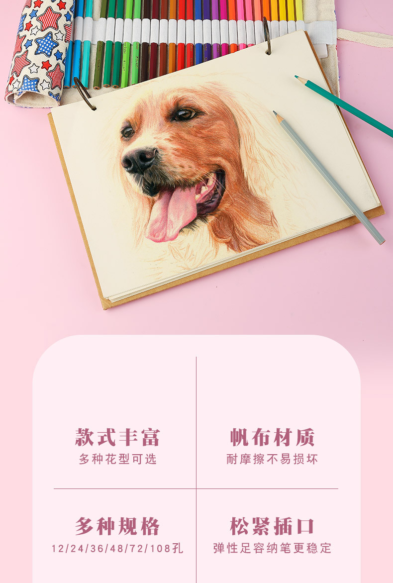 수제 캔버스 펜 커튼 12/24/36/48/72 홀 대용량 롤 펜 가방 남녀 컬러 리드 스케치 문구 상자