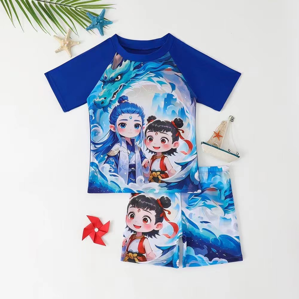 어린이 Diya 분할 수영복 남녀 중소 어린이 만화 인쇄 수영복 비치 온천 수영복 도매