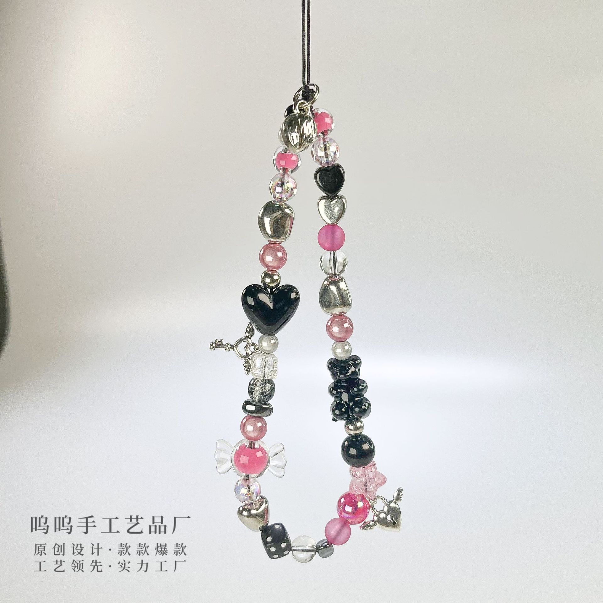 원래 장미 붉은 뜨거운 소녀 y2g 스타일 ccd 카메라 끈 벨 펜던트 하트 모양의 키 모양 구슬 휴대 전화 체인