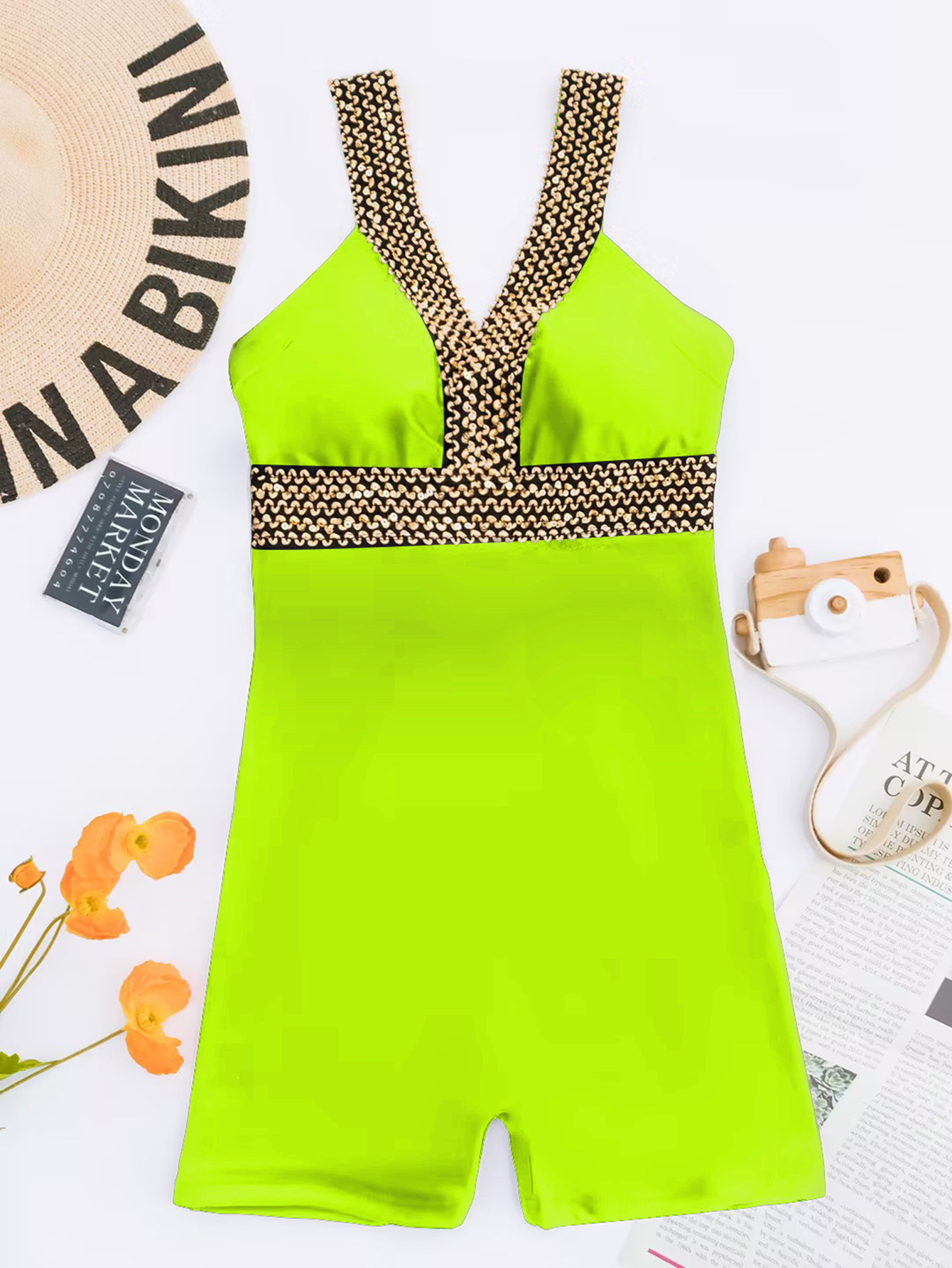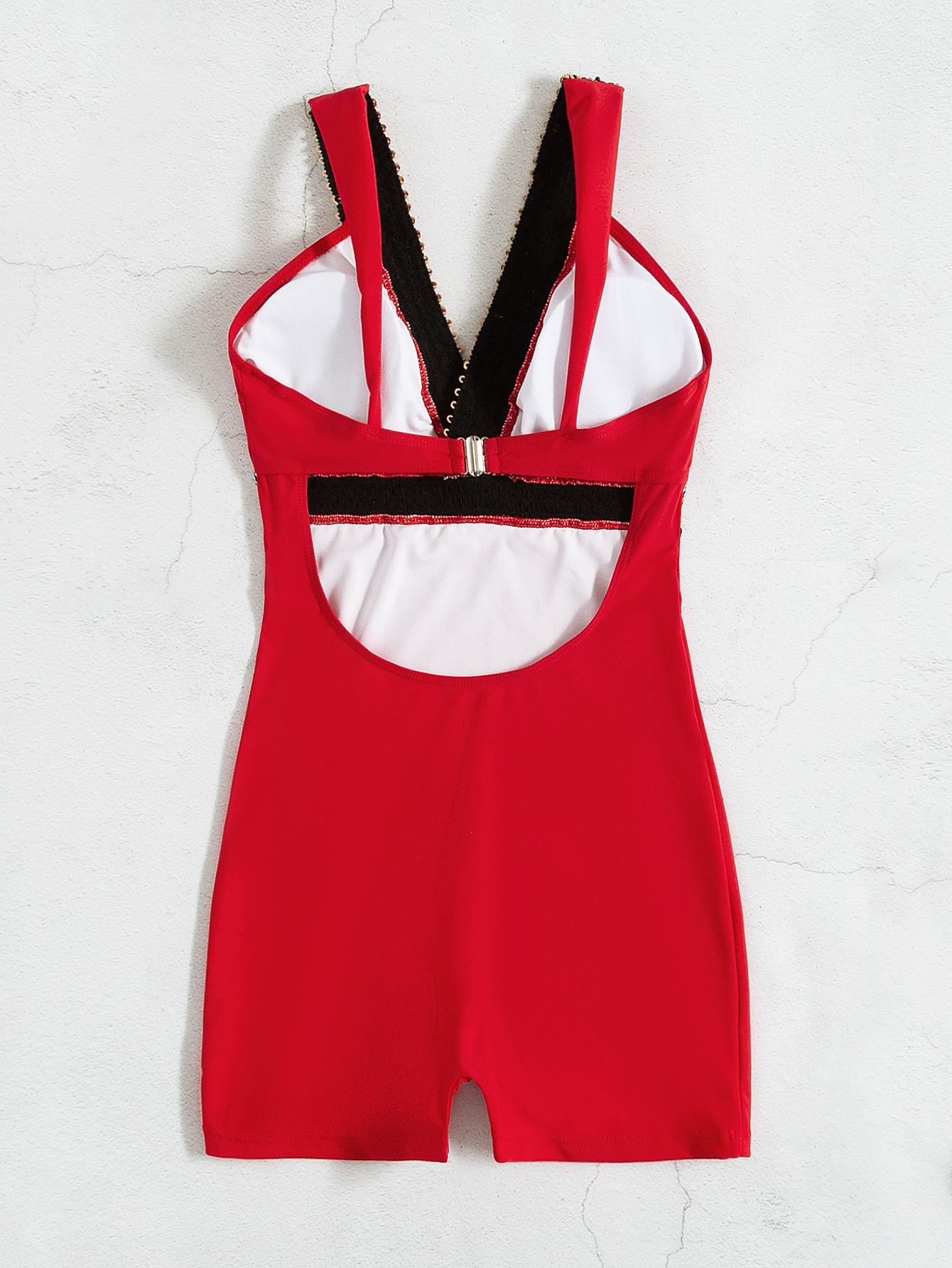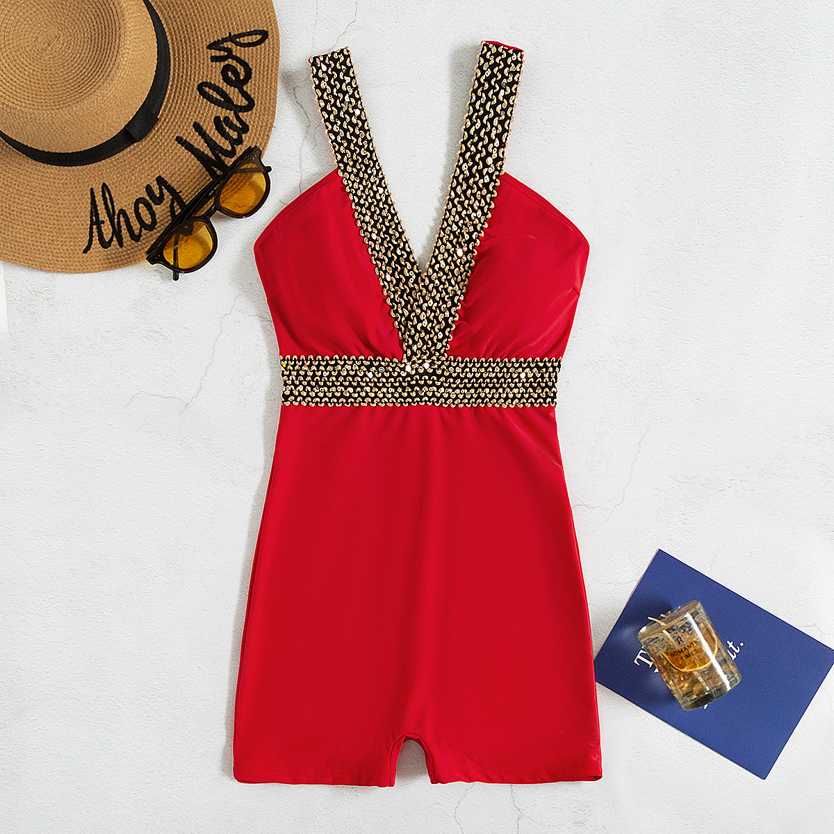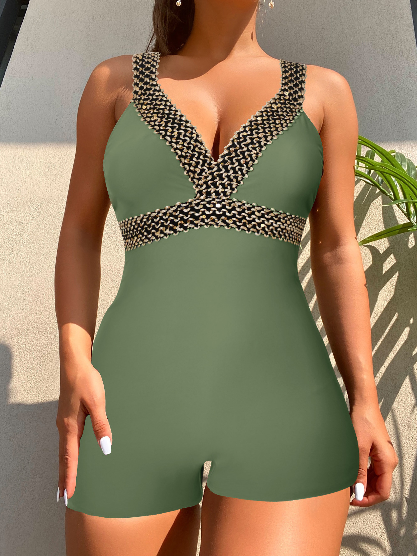2025 유럽과 미국의 새로운 패션 크로스보더 섹시한 딥 V 백리스 솔리드 컬러 스트랩 특징이 있는 여성용 복서 원피스 수영복스토어 가기