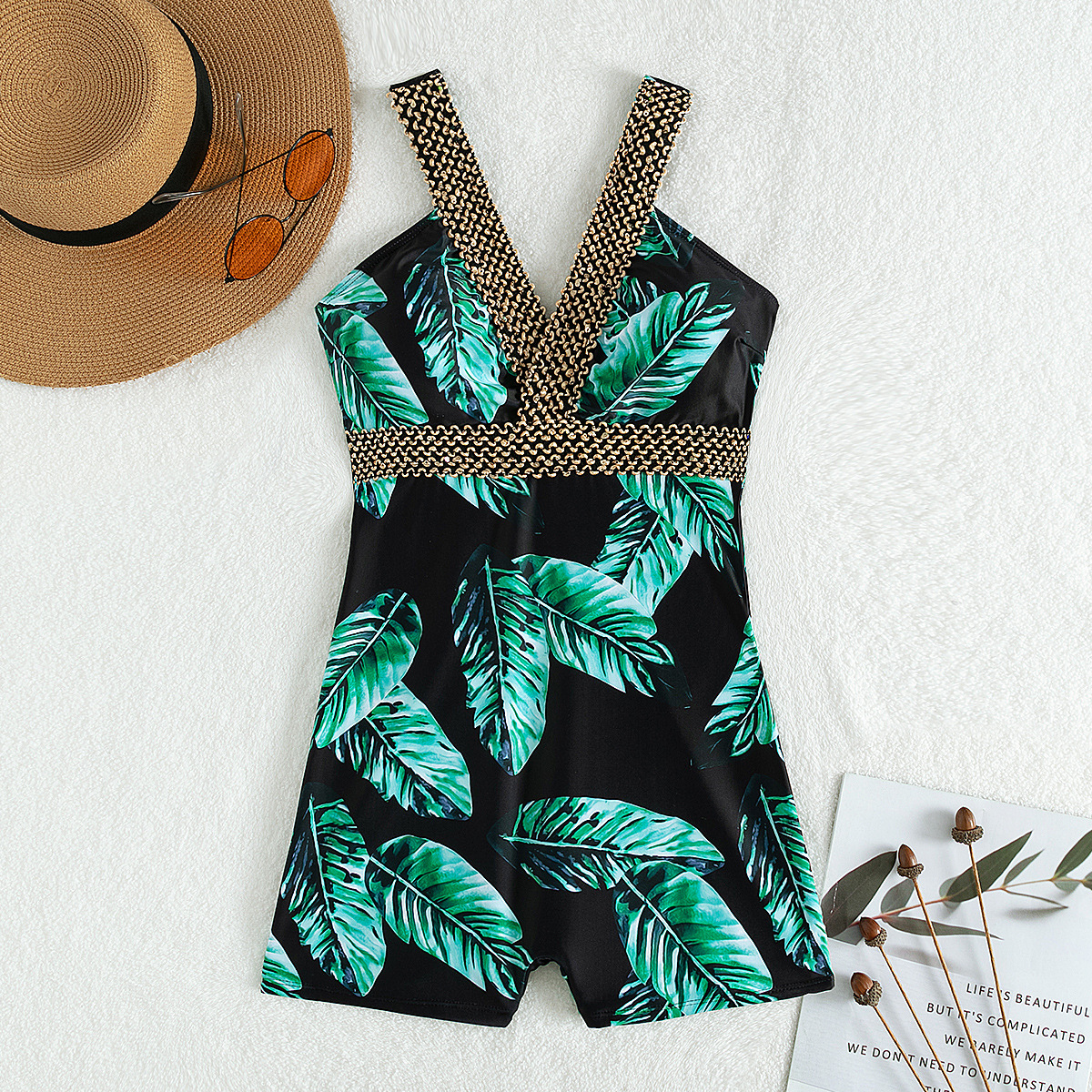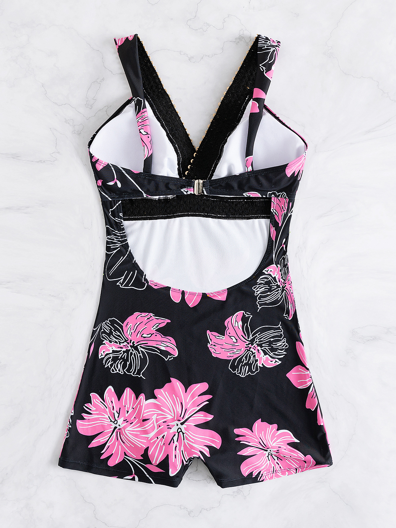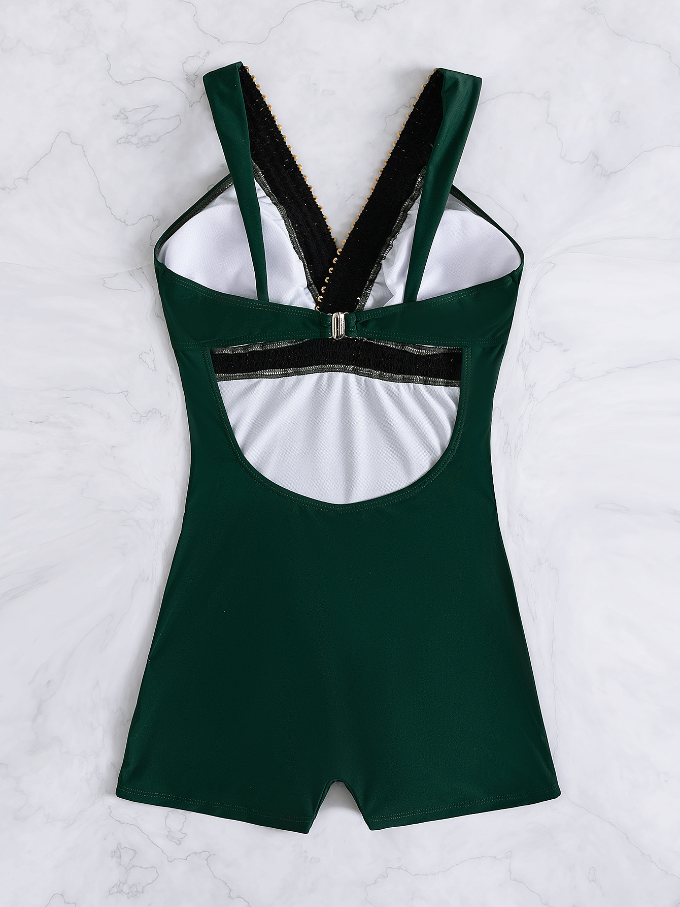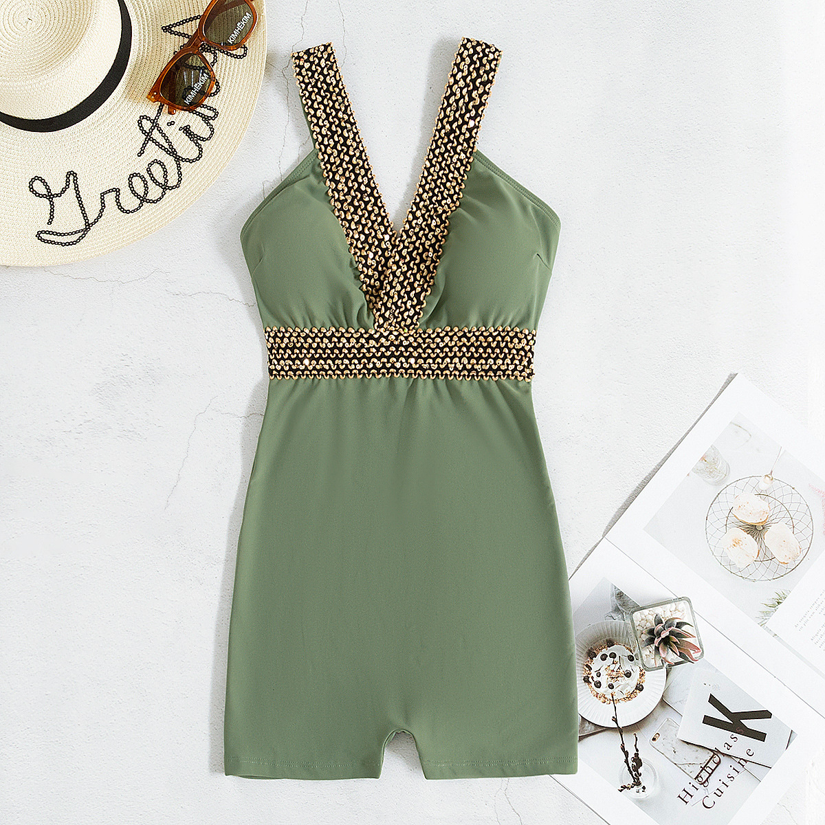 2025 유럽과 미국의 새로운 패션 크로스보더 섹시한 딥 V 백리스 솔리드 컬러 스트랩 특징이 있는 여성용 복서 원피스 수영복스토어 가기