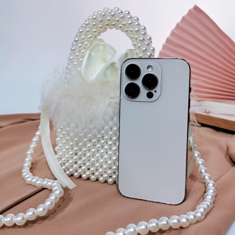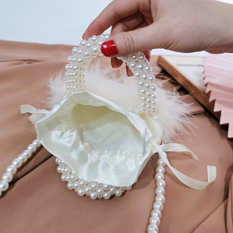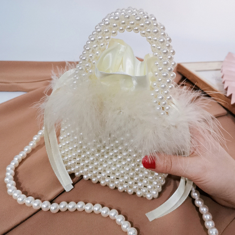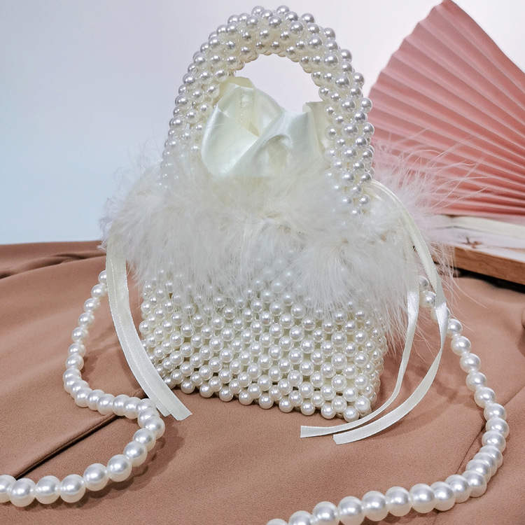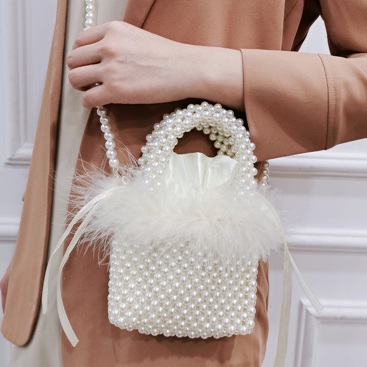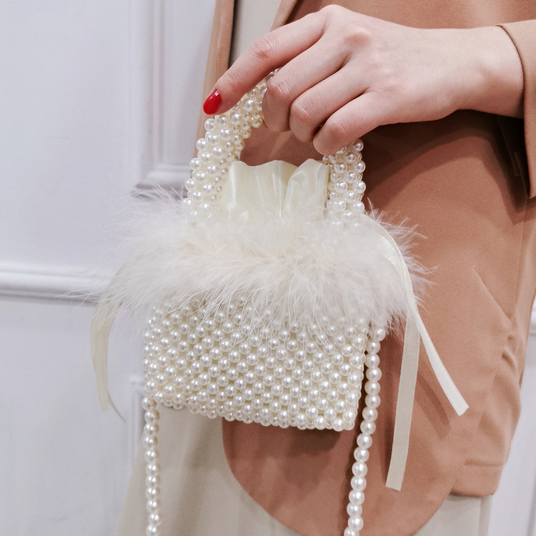 사용자 정의 패션 수제 문자열 구슬 가방 모조 진주 스몰 사이즈 스퀘어 아크릴 짠 화이트 헤어 핸드백 크로스 바디 숄더 백