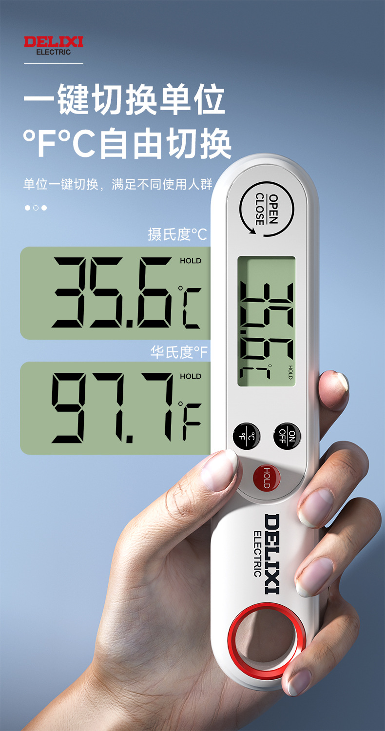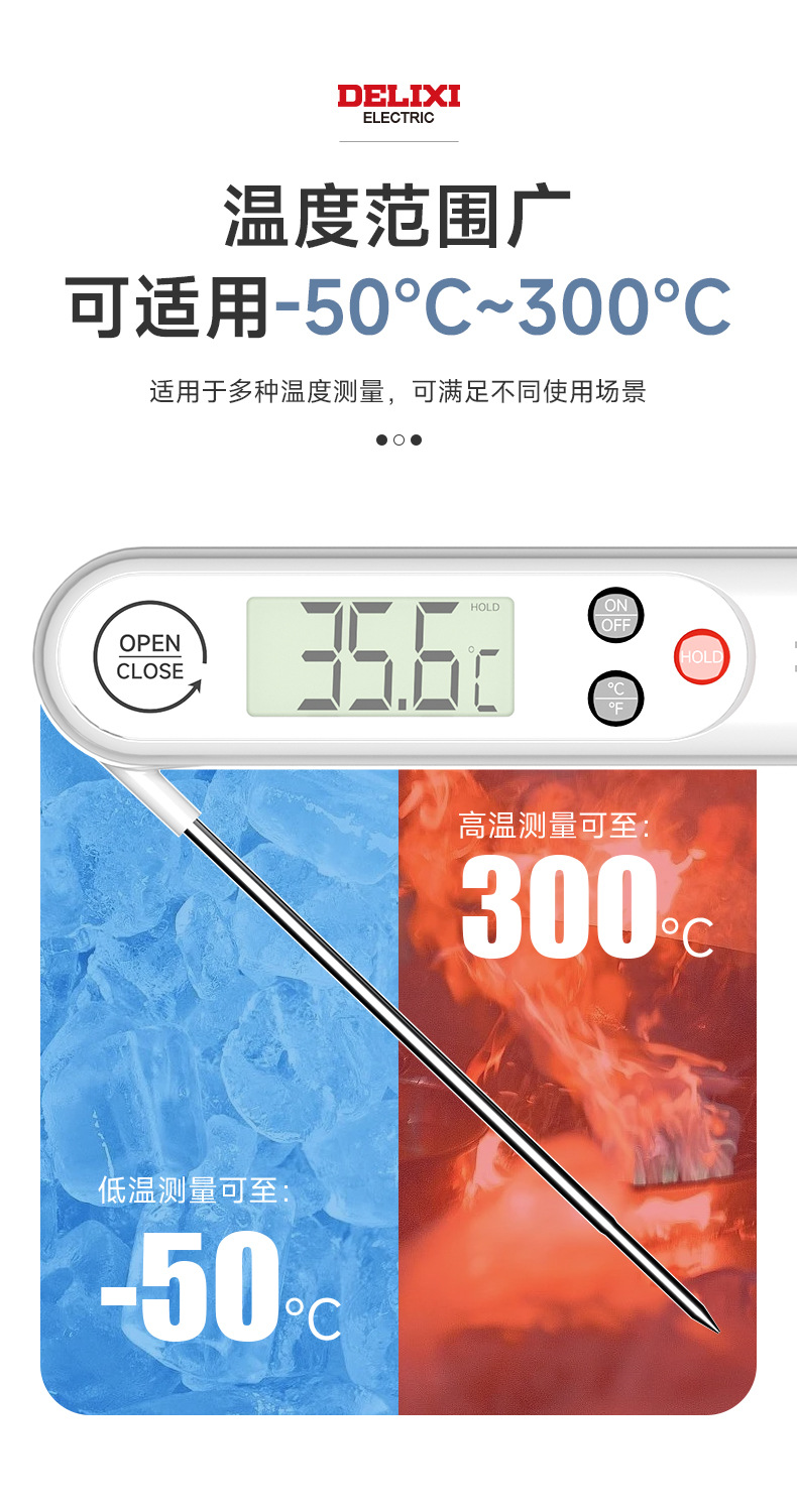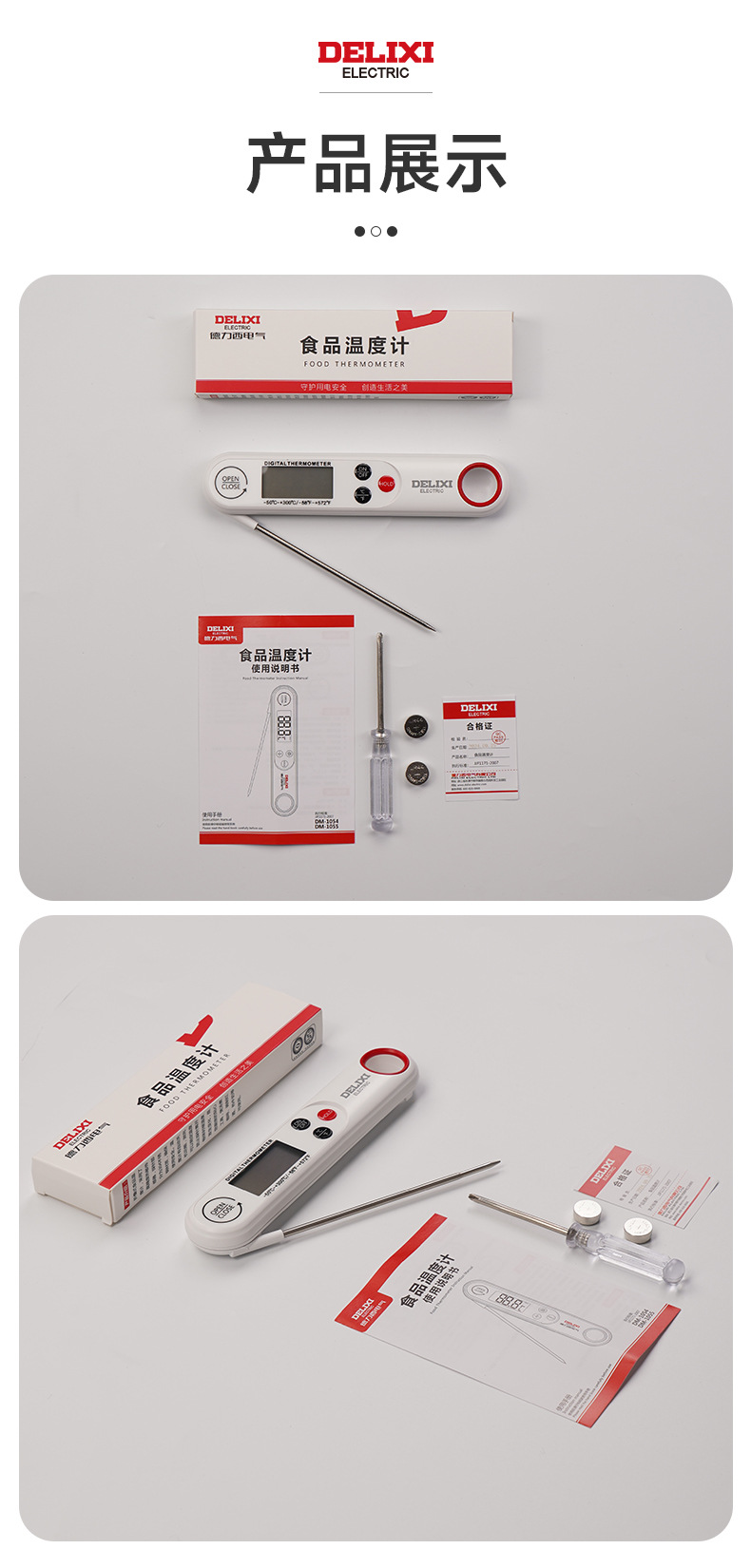 Delixi 식품 온도계 방수 접이식 수온 온도계 주방 가정용 고기 바베큐 전자 온도계