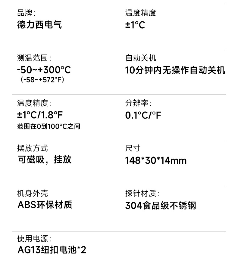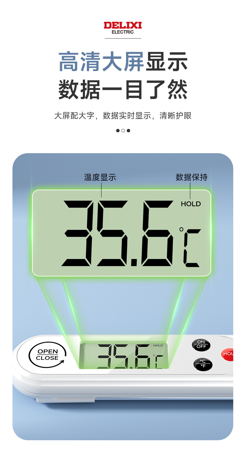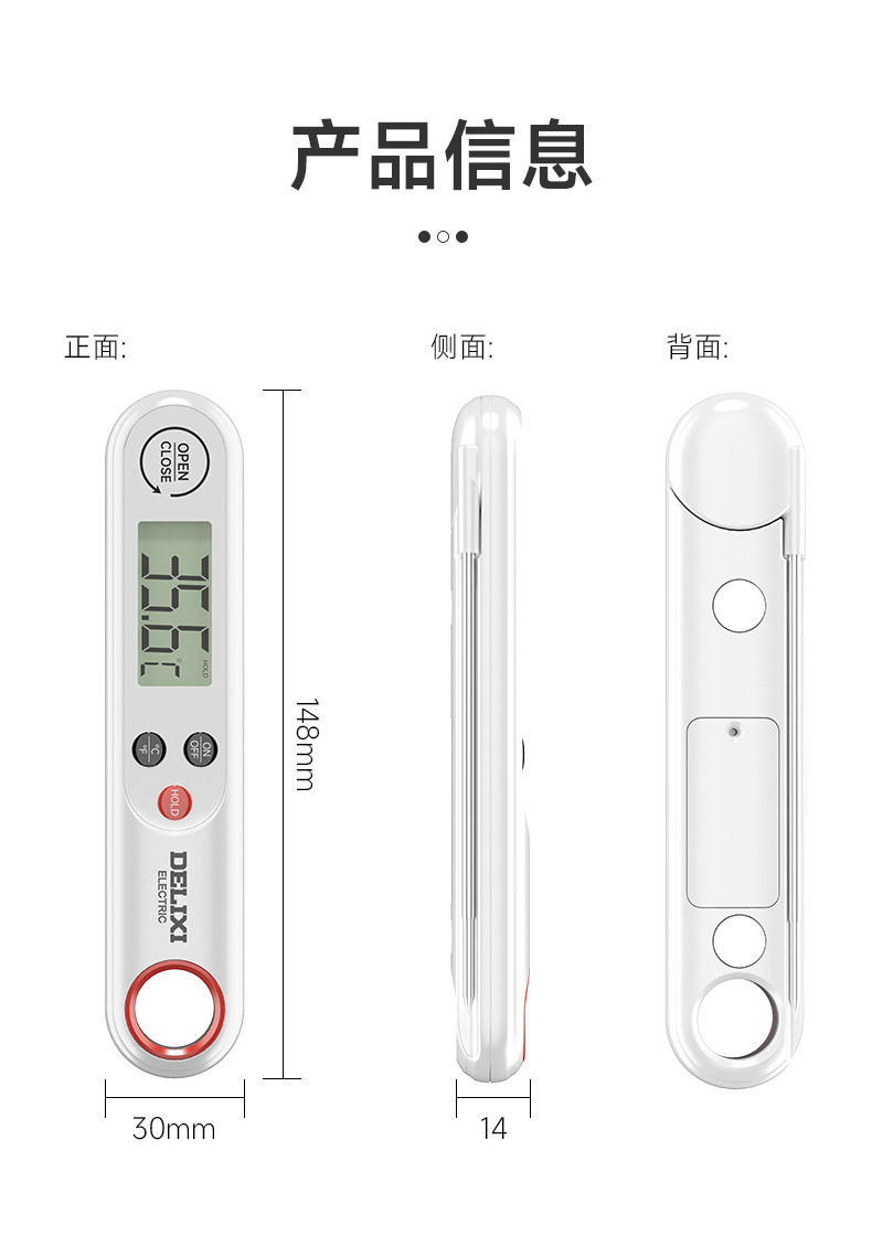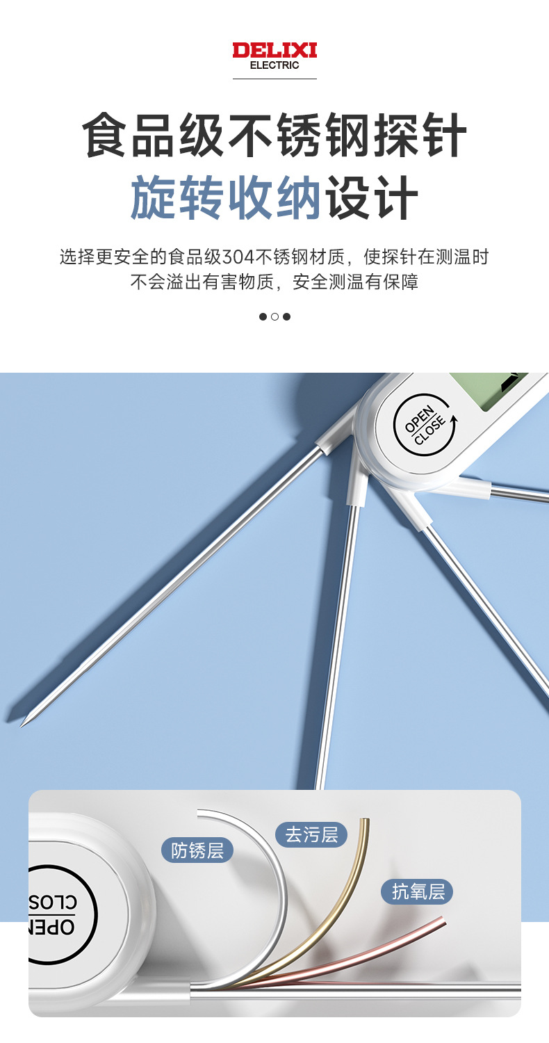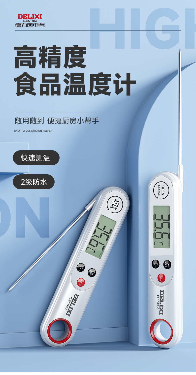 Delixi 식품 온도계 방수 접이식 수온 온도계 주방 가정용 고기 바베큐 전자 온도계스토어 가기