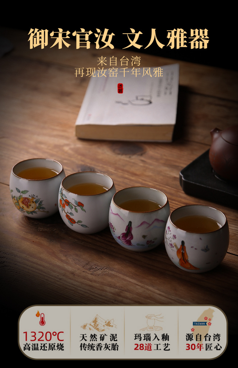 Ru Kiln 마스터 컵 세라믹 작은 찻잔 차 시음 컵 단일 찻그릇 개인 컵 쿵푸 찻잔 다도 세트스토어 가기