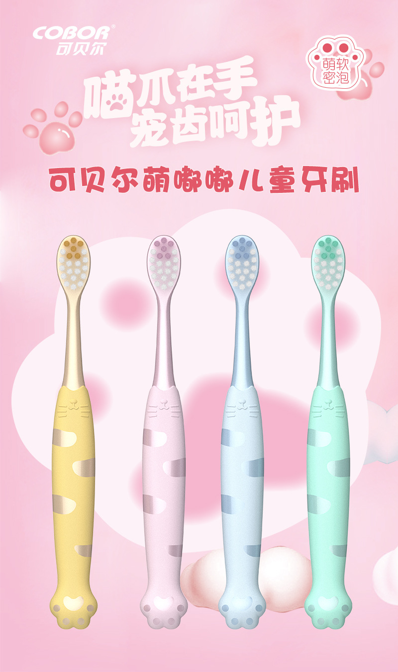 Kebel 어린이 귀여운 고양이 발톱 부드러운 머리 2-12 세 귀여운 만화 모양 미끄럼 방지 손잡이 칫솔 12 팩스토어 가기