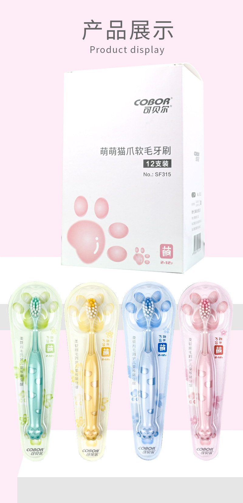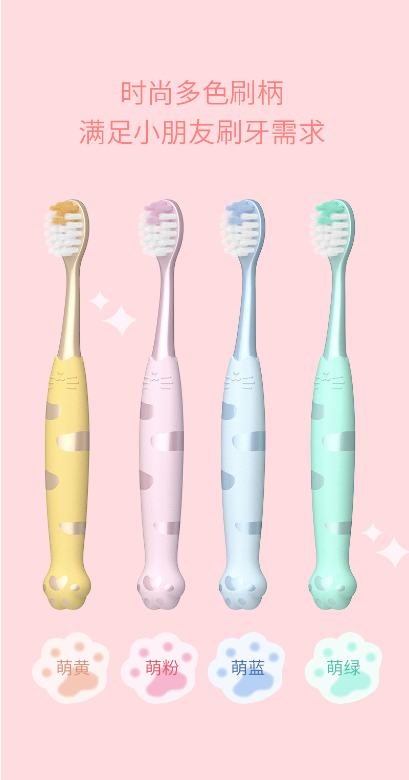 Kebel 어린이 귀여운 고양이 발톱 부드러운 머리 2-12 세 귀여운 만화 모양 미끄럼 방지 손잡이 칫솔 12 팩