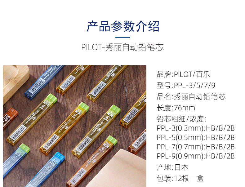 일본 Baile PILOT 액티브 리드 PPL-3/-5/-7 아름다운 자동 연필 리드 학생 문구 망원경