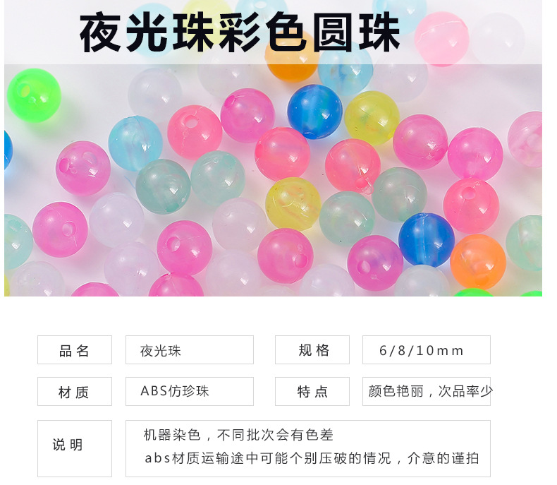 6/8/10mm 발광 원형 구슬 발광 구슬 천공 낚시 장비 콩 형광 발광 구슬 도매스토어 가기