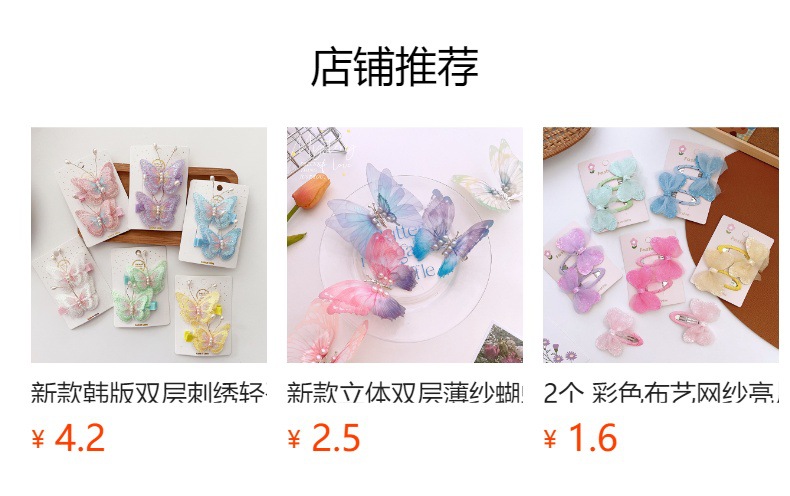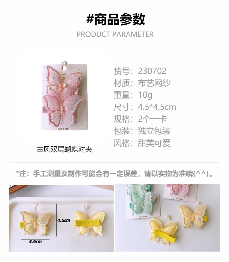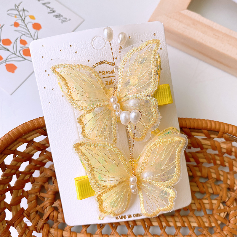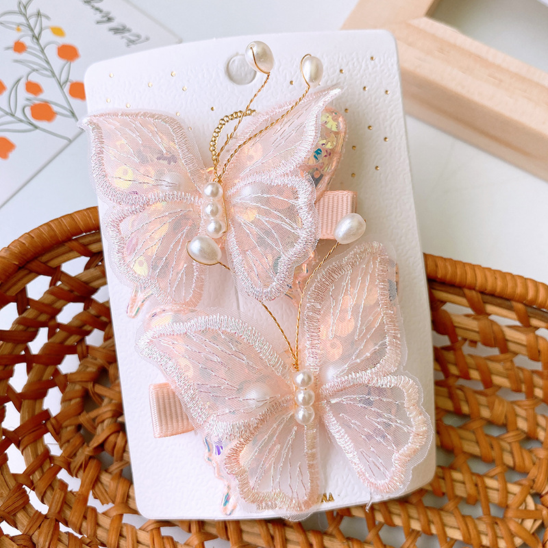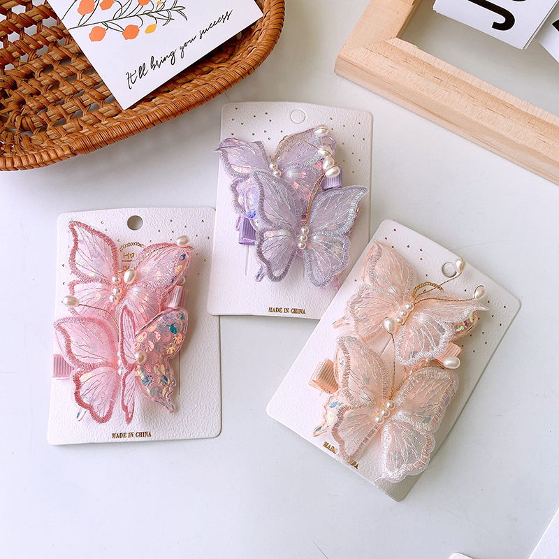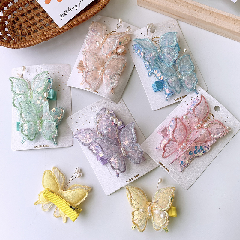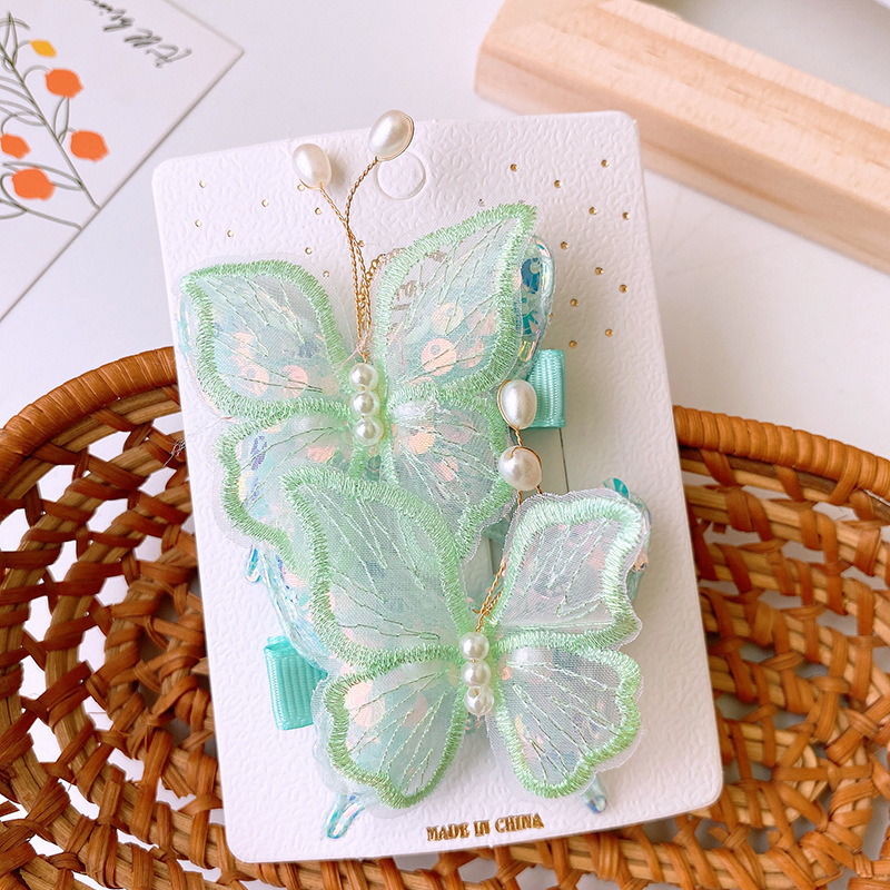 2 다채로운 메쉬 경량 요정 스타일 더블 레이어 스팽글 진주 나비 클립 골동품 어린이 Hanfu 헤어 액세서리스토어 가기