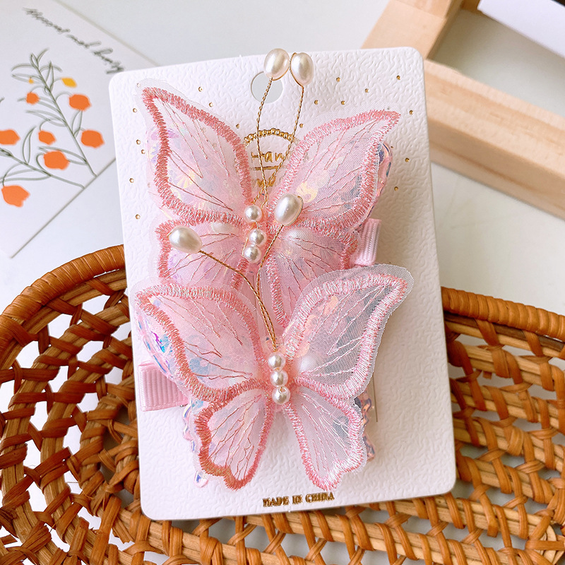 2 다채로운 메쉬 경량 요정 스타일 더블 레이어 스팽글 진주 나비 클립 골동품 어린이 Hanfu 헤어 액세서리