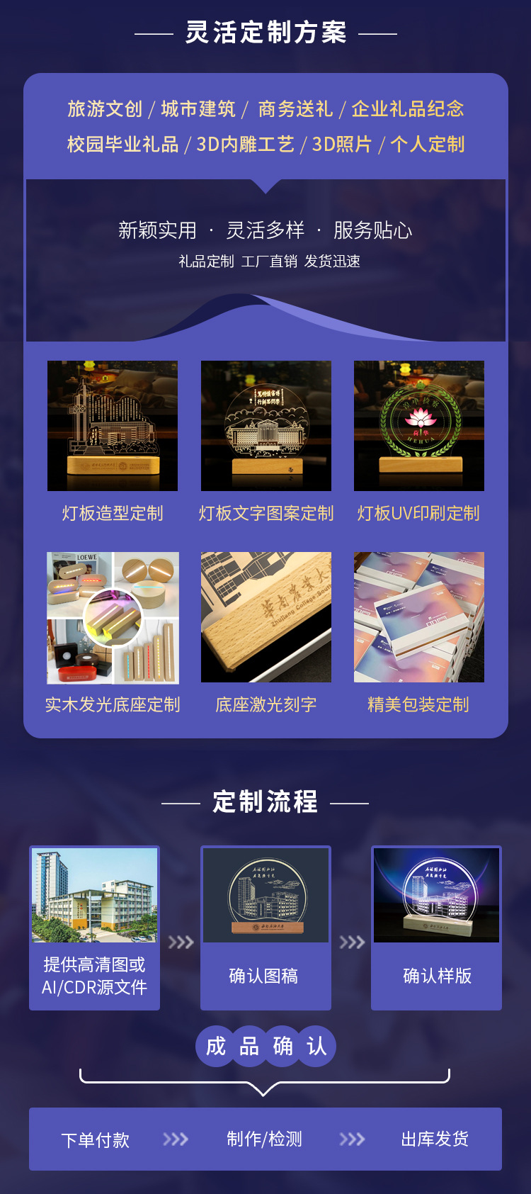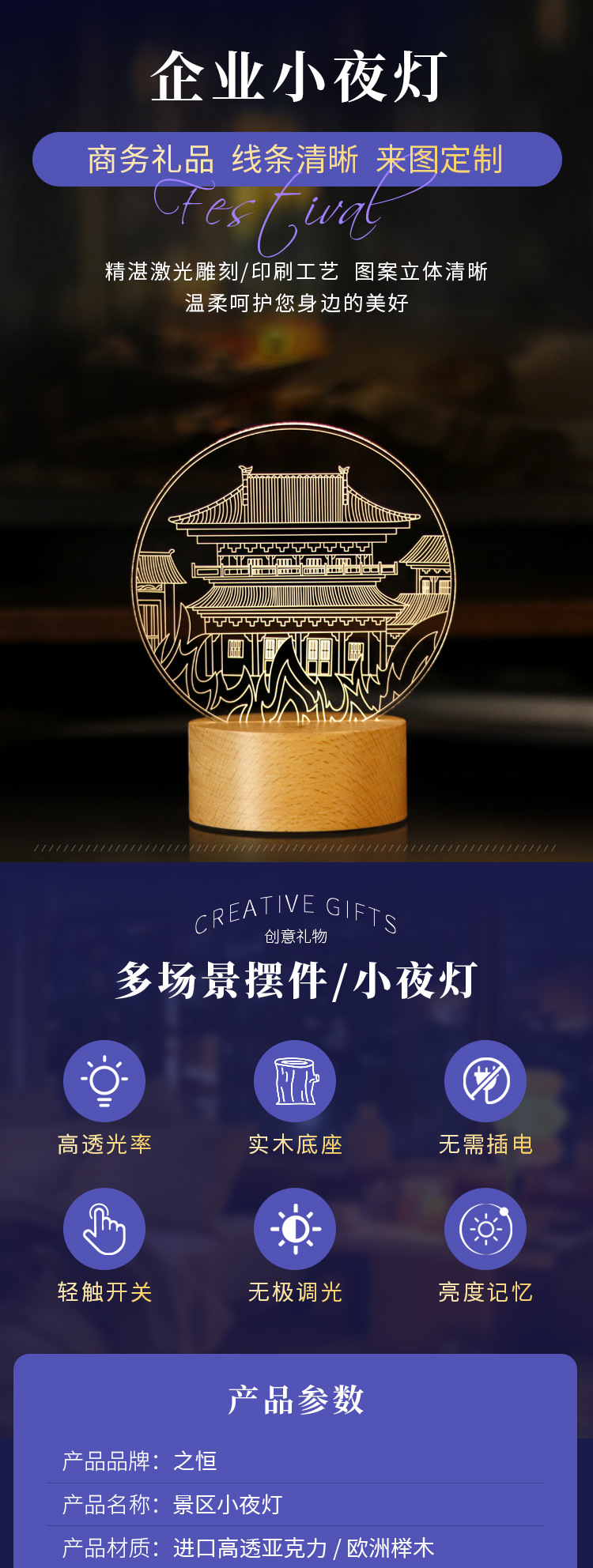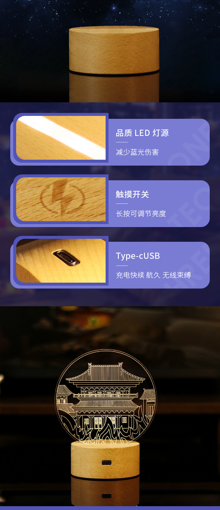 아크릴 소형 야간등, 맞춤형 중국풍 선물, 문화창의적인 관광지 기념품, 내부 조각 기념품, 창의적인 장식품