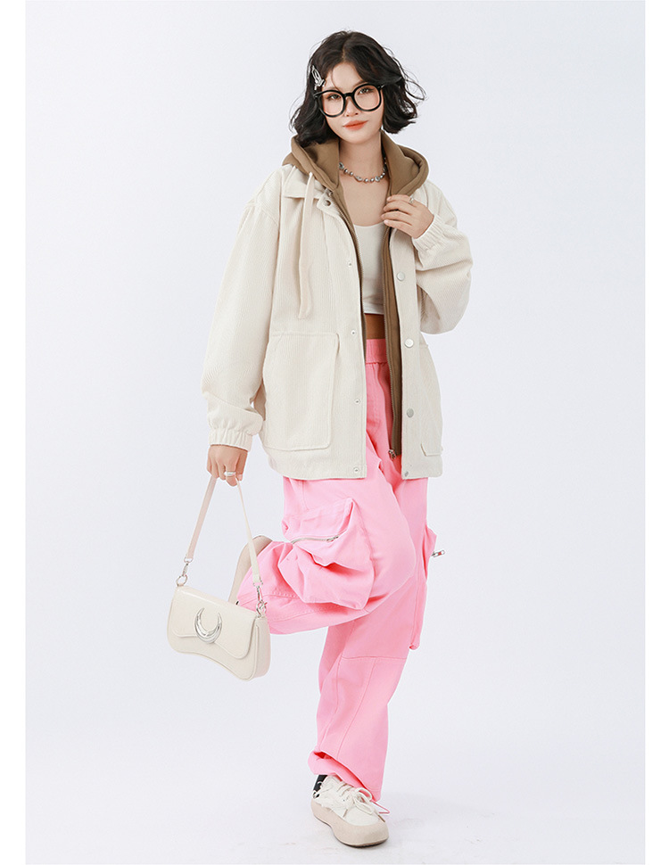 일본 패션 브랜드 커플 코듀로이 후드 재킷 가을과 겨울 기모 두꺼운 남성 홍콩 스타일 가짜 투피스 스웨터 재킷스토어 가기
