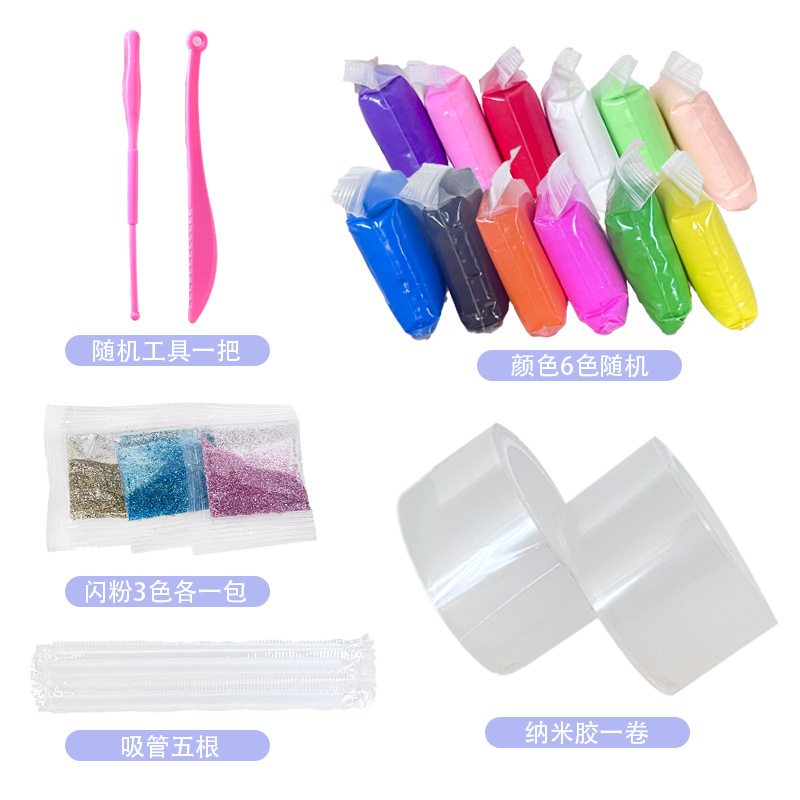 나노 접착제 반죽 음악 DIY 장난감 세트 재료 가방 어린이 불고 거품 감압 반죽 접착제 양면 테이프 공기