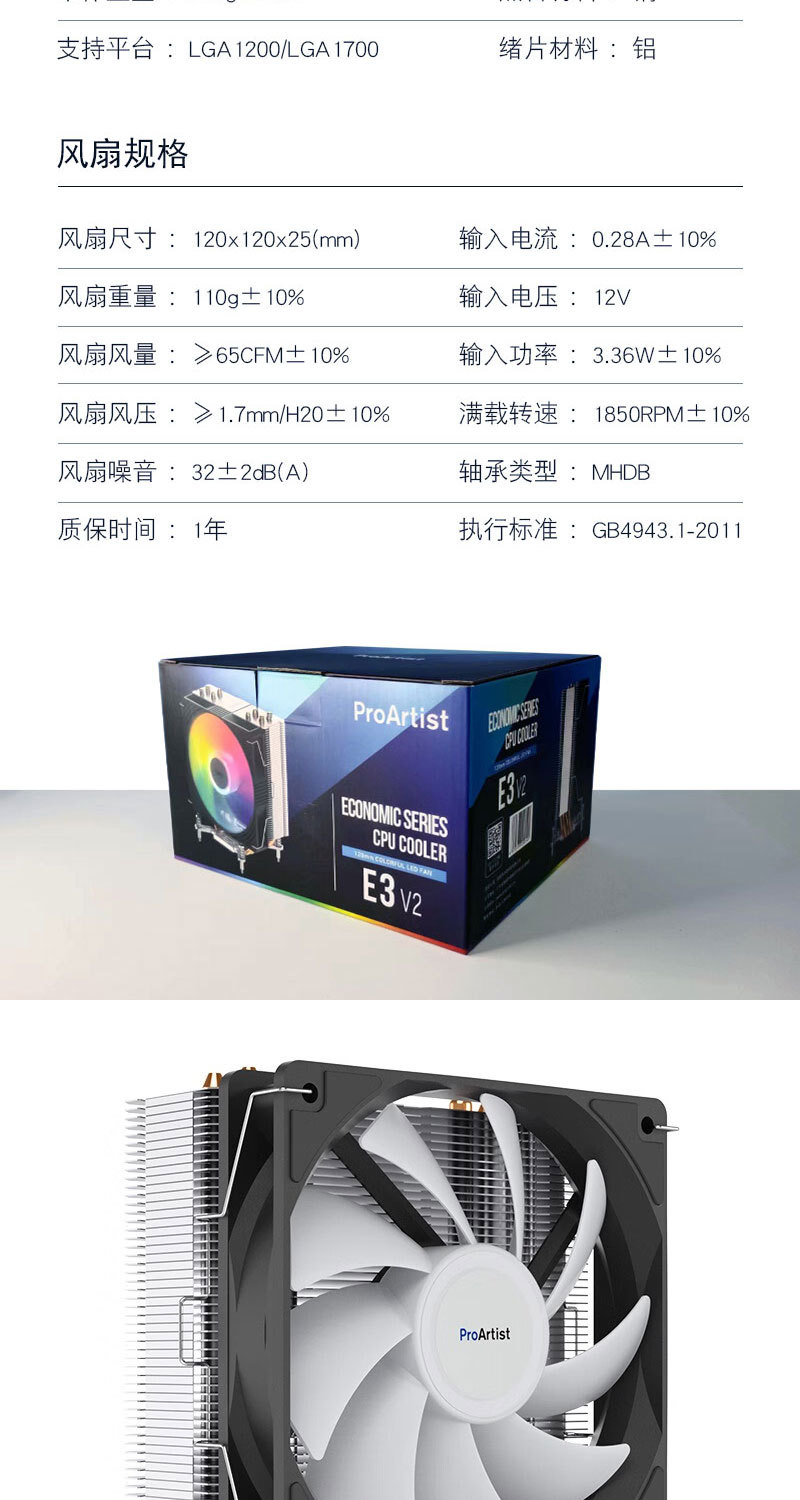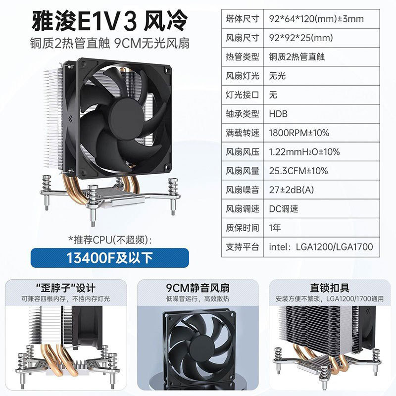 Yajun E3V3 CPU 공냉식 라디에이터 4개의 히트 파이프 다채로운 팬 E1V3은 1200/1700 플랫폼을 지원합니다.스토어 가기