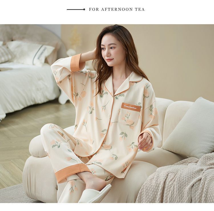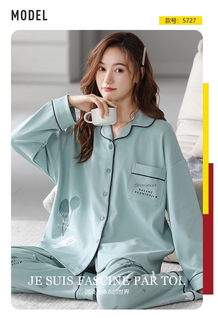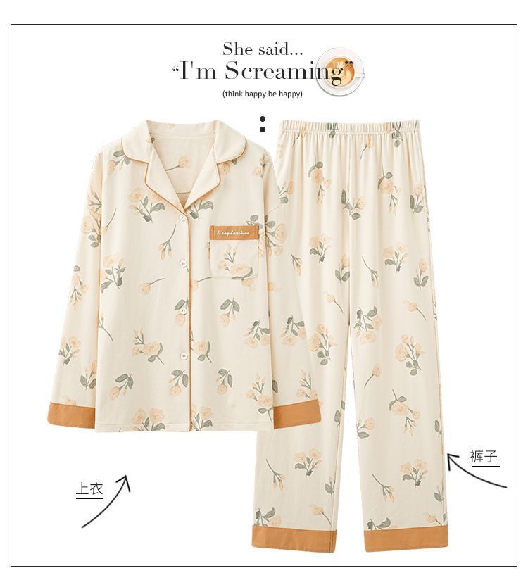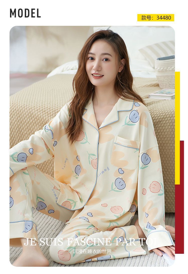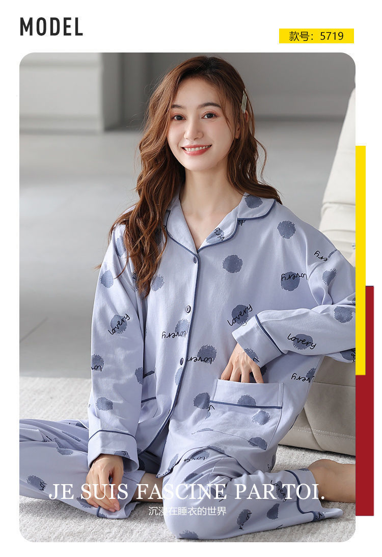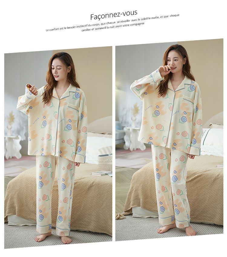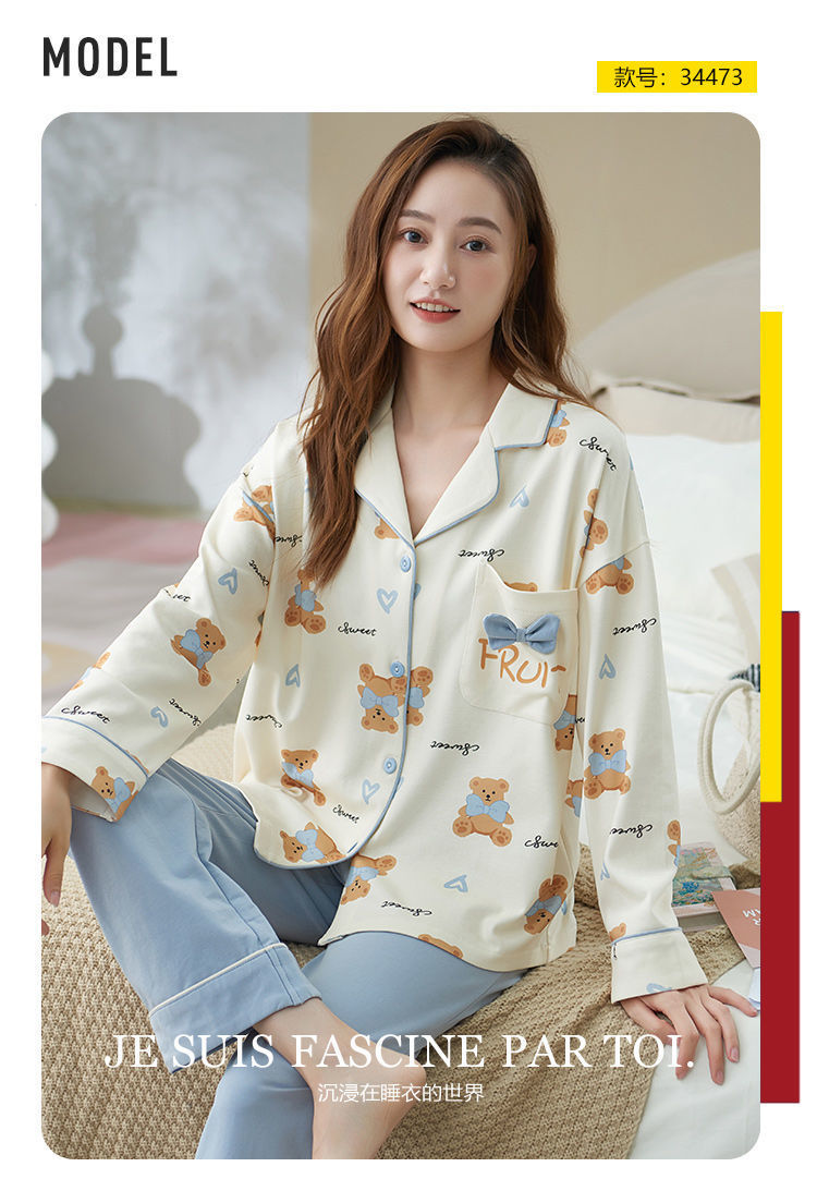잠옷 여자의 봄과 가을 100% 면 긴 소매 달콤한 한국어 느슨한 플러스 사이즈 면 겉옷 가정 옷스토어 가기