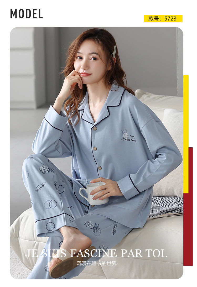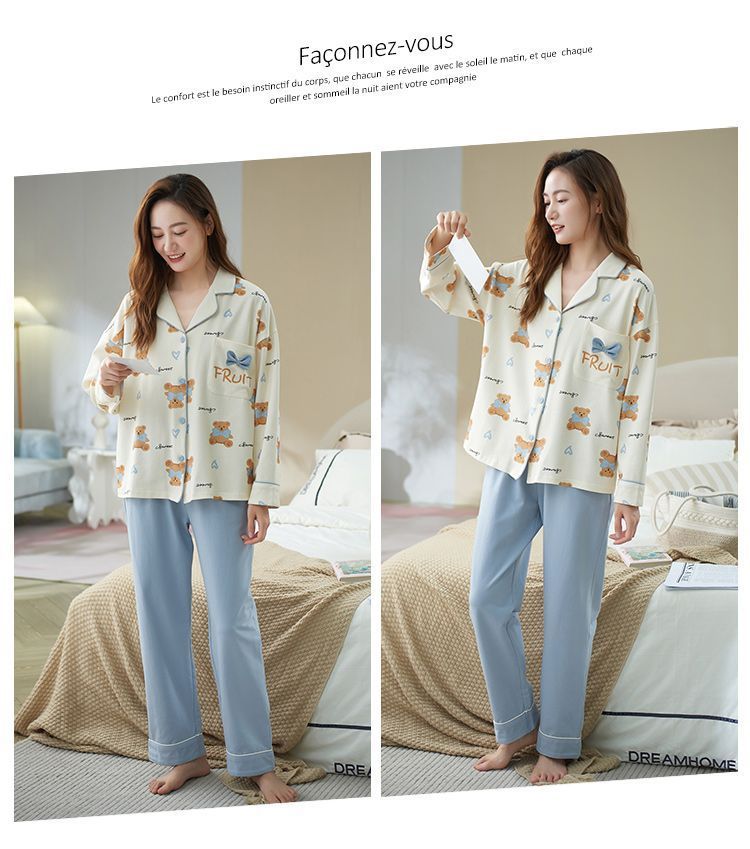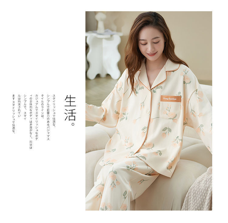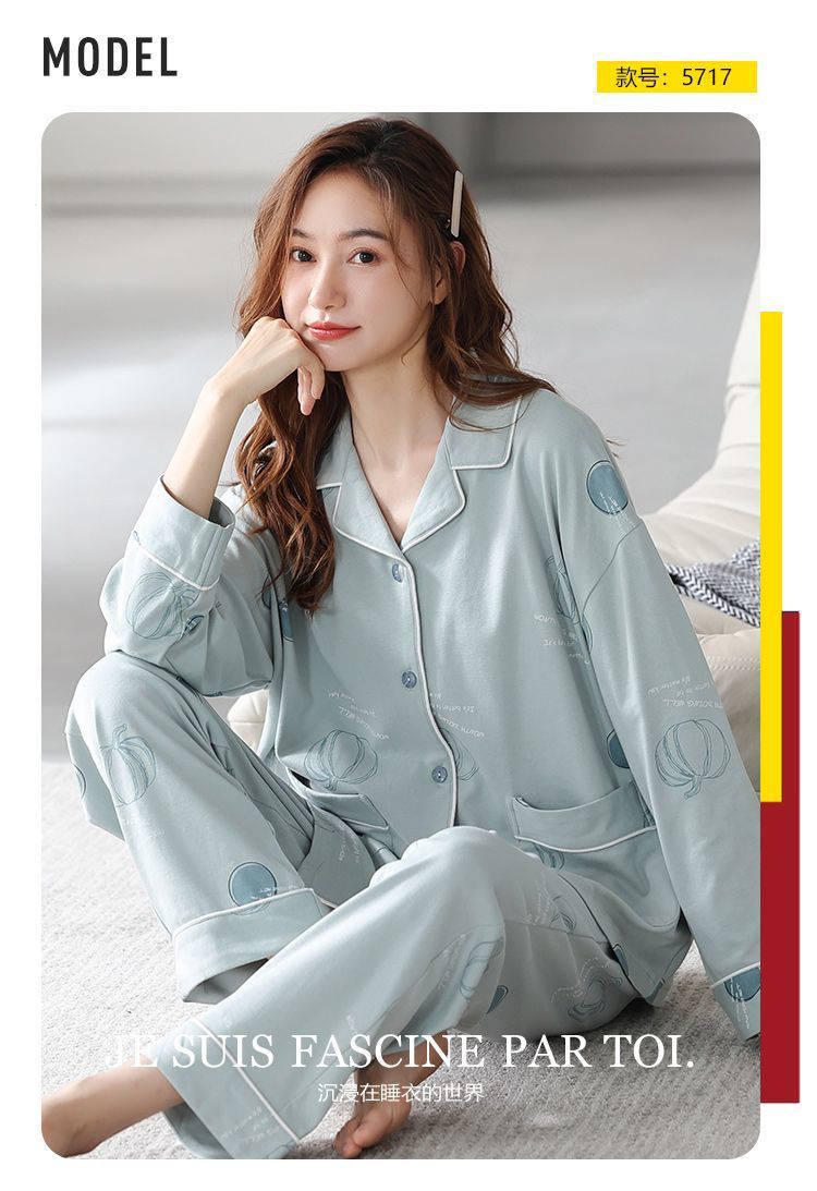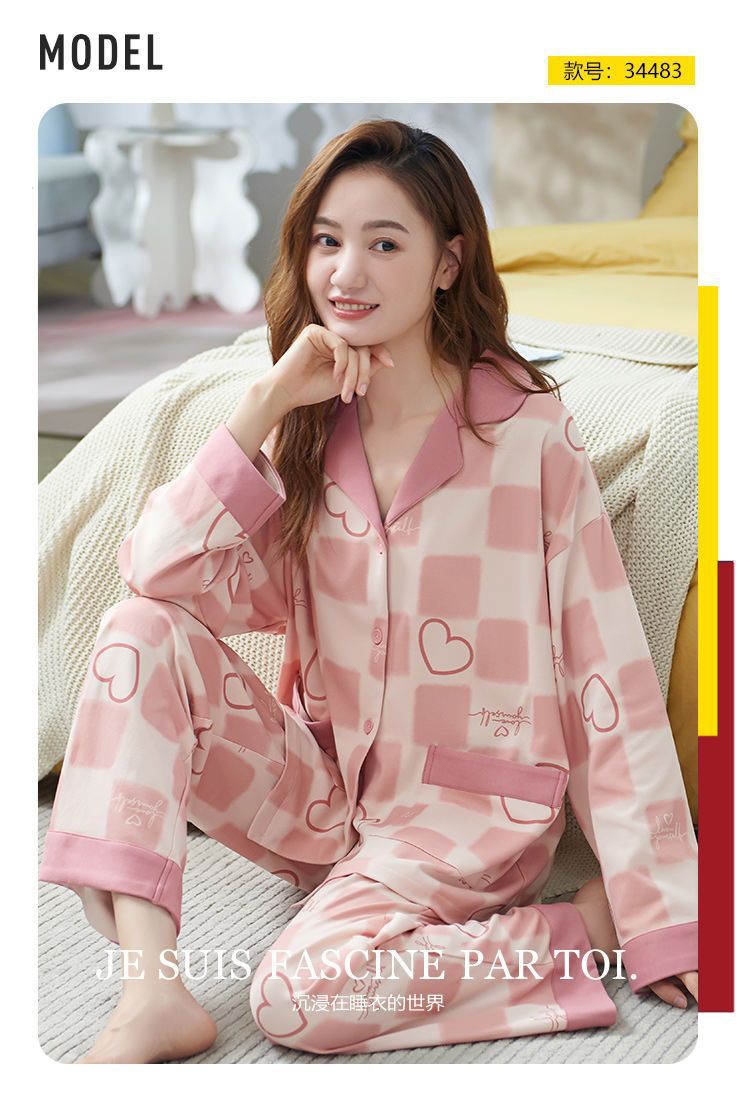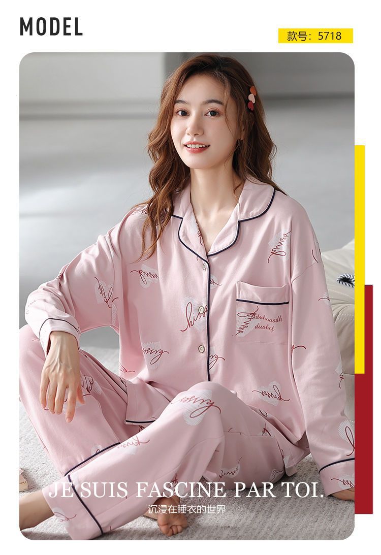 잠옷 여자의 봄과 가을 100% 면 긴 소매 달콤한 한국어 느슨한 플러스 사이즈 면 겉옷 가정 옷스토어 가기